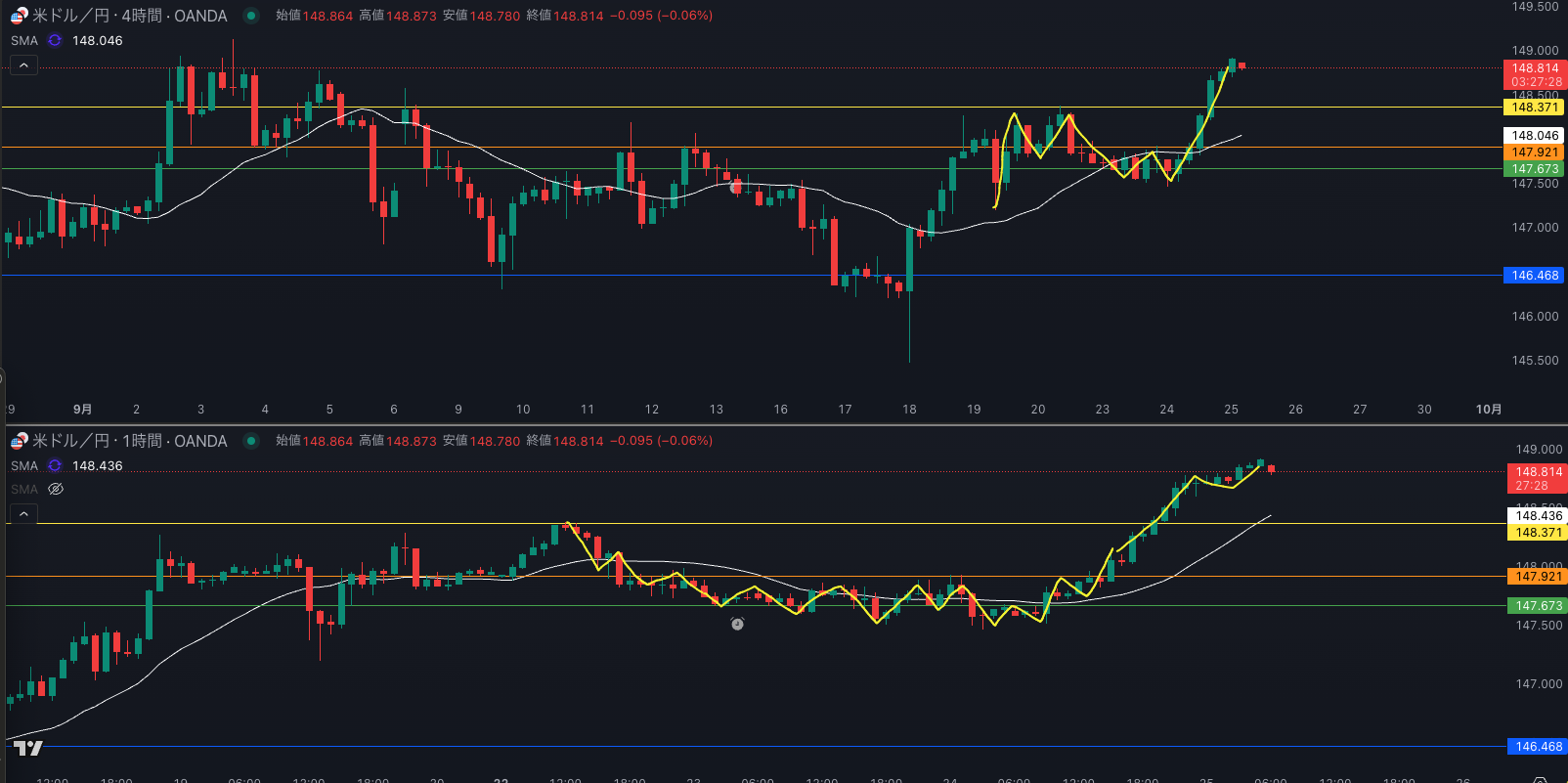 4時間戻り売りを狙いつつSMAの方向は気にしていきたい