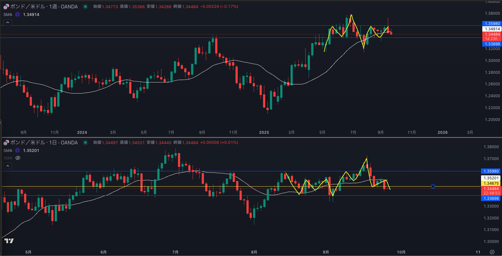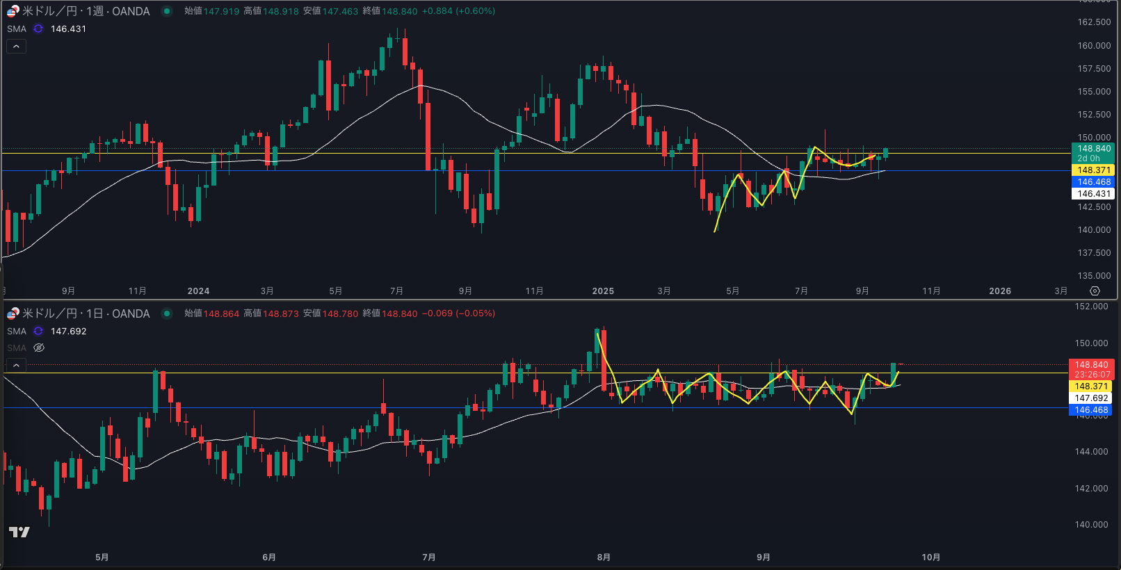 - 日足の確定は1日の終わりなので サポレジを動かさない