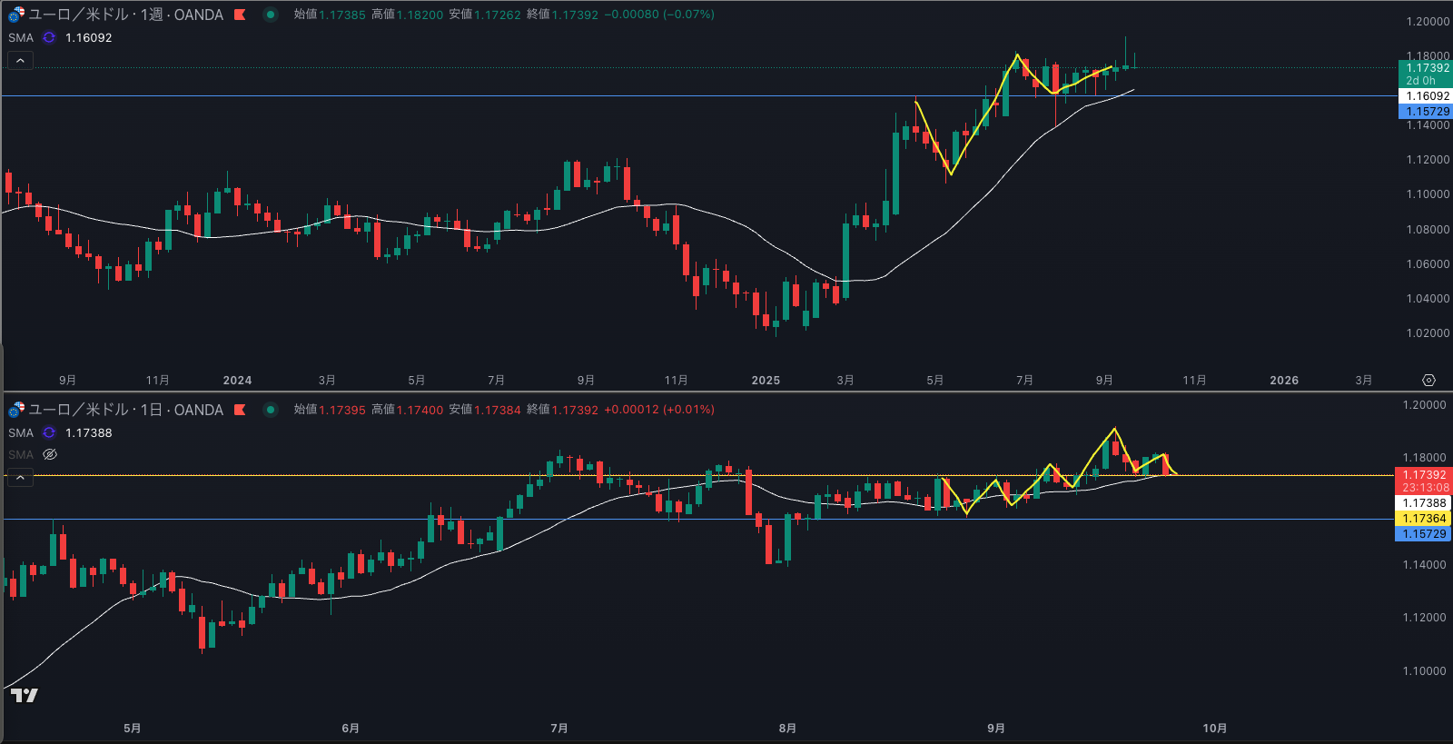 日足のサポートでは4時間SMAが追い付く位待ってエントリーを考える