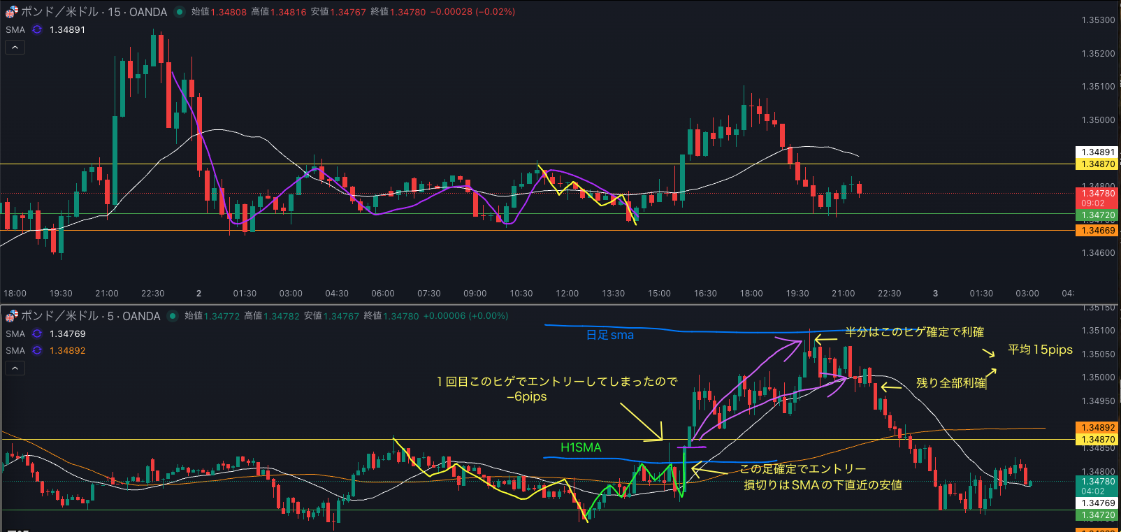 一旦上目線に変わった後 反転でエントリーを見ていく