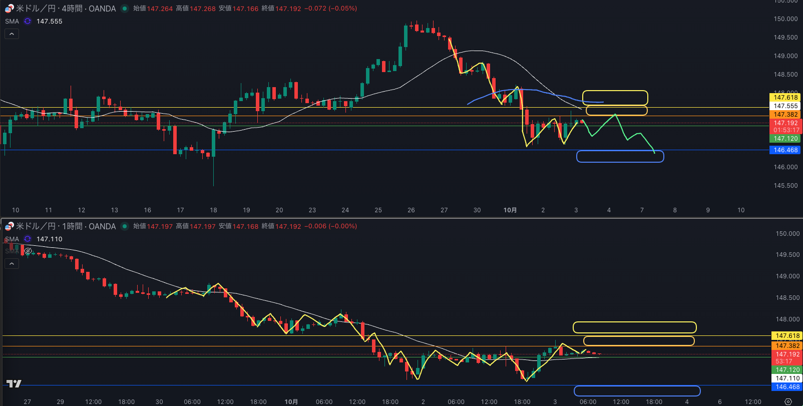 - 日足の確定は1日の終わりなので サポレジを動かさない