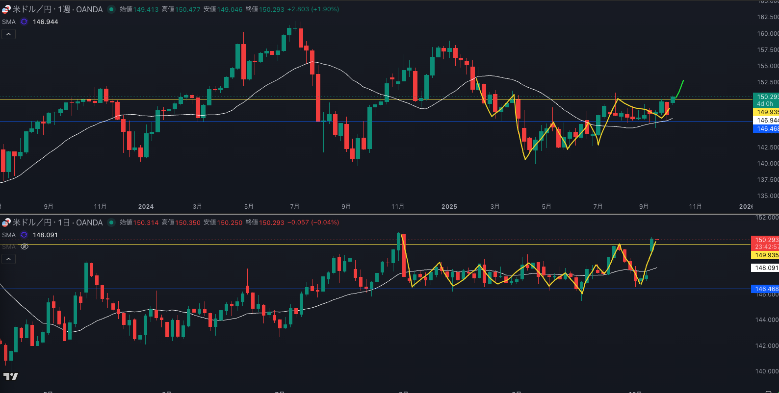週足のSMAにも買い支え 上昇中