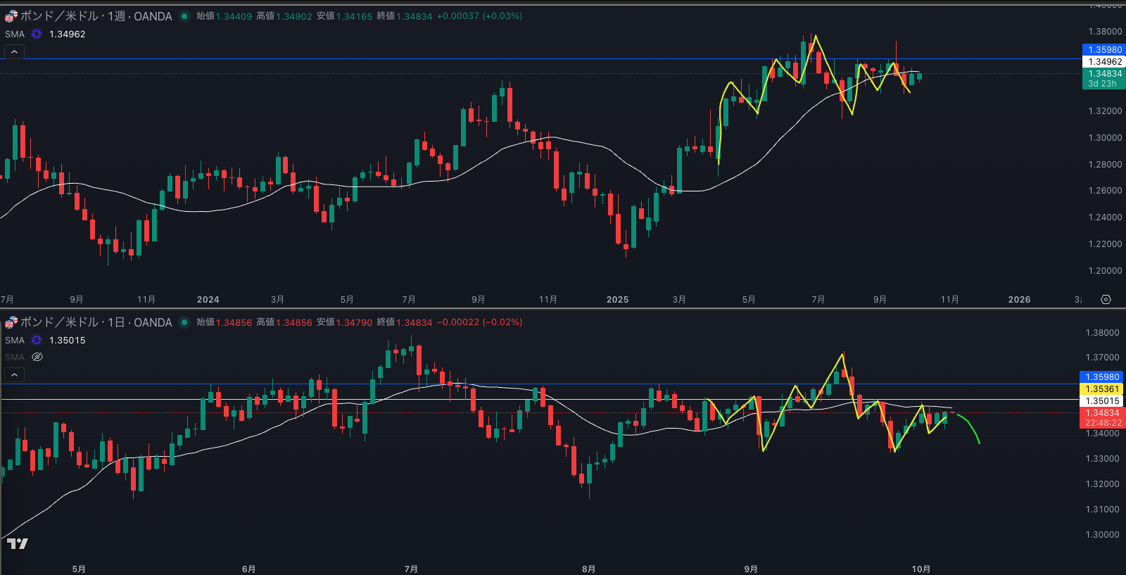 週足SMAも売り抑えてくる