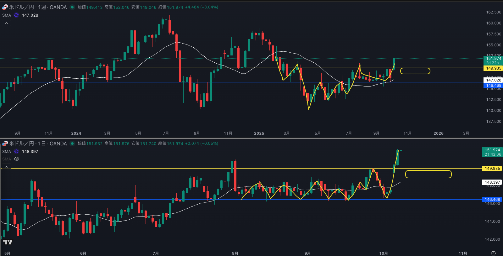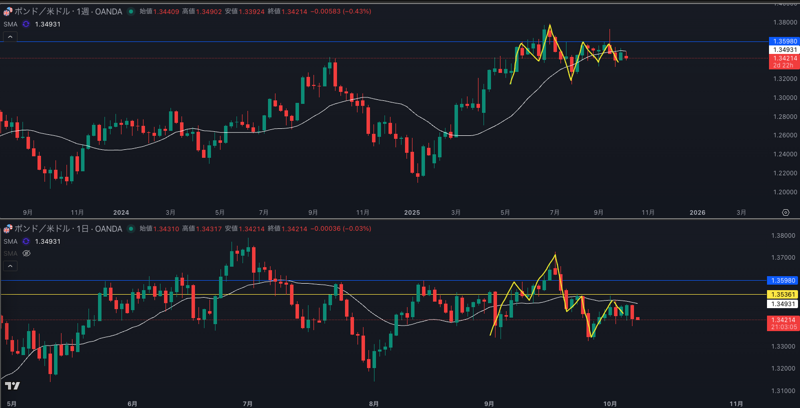 - 日足の確定は1日の終わりなので サポレジを動かさない