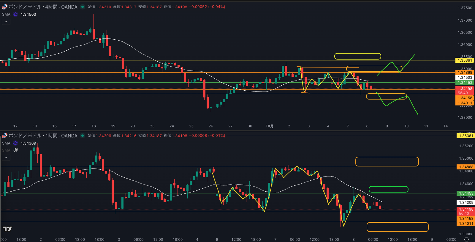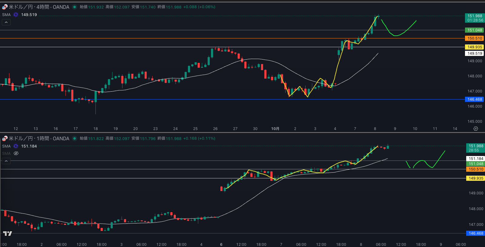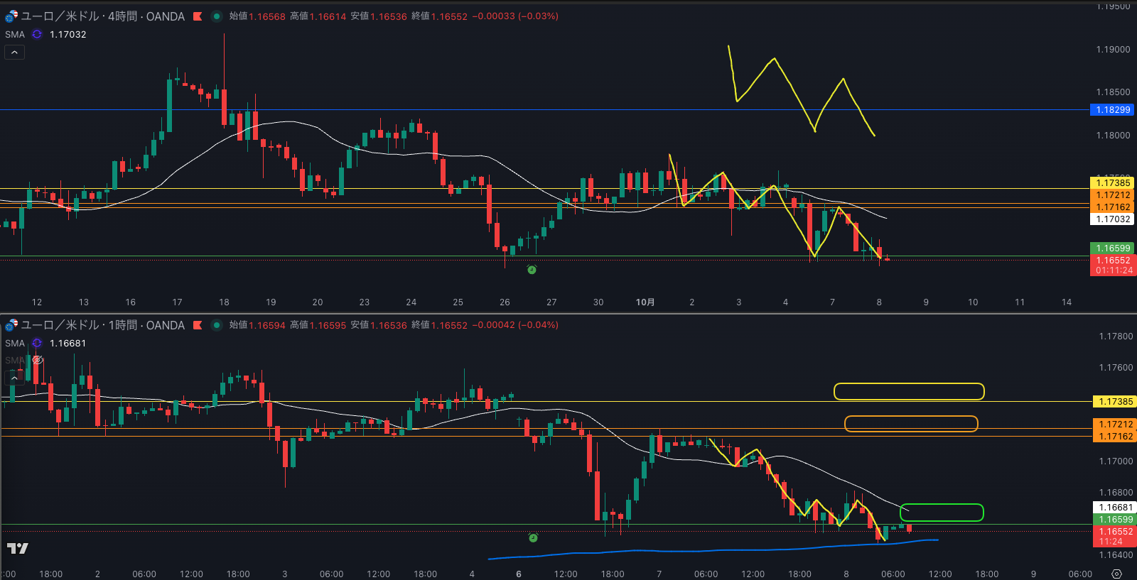 1時間押し目買い勢力の上に1時間SMAがいるので押し目買いはなし 静観