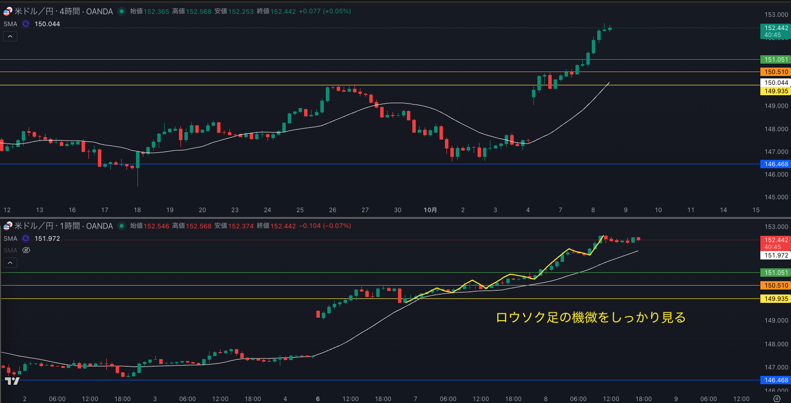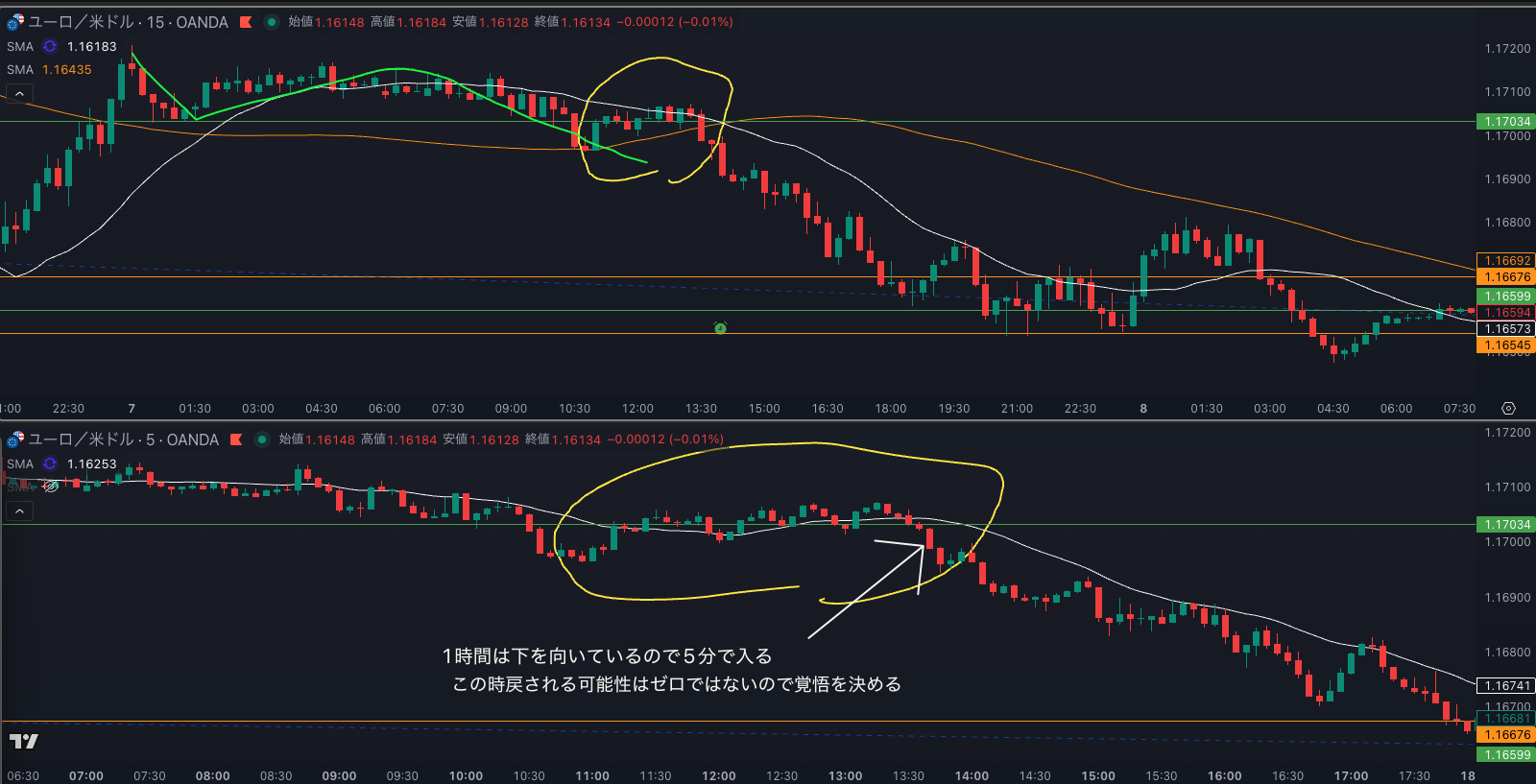 1時間押し目買い勢力の上に1時間SMAがいるので押し目買いはなし 静観