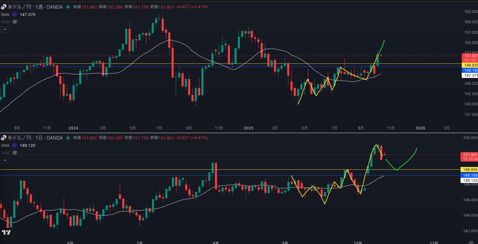 - 日足の確定は1日の終わりなので サポレジを動かさない