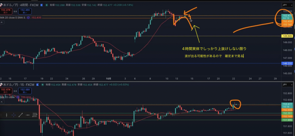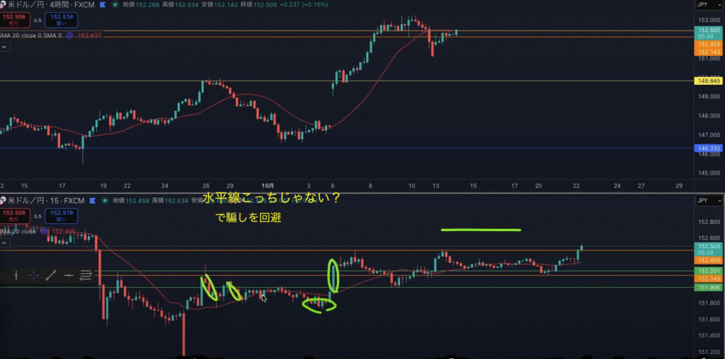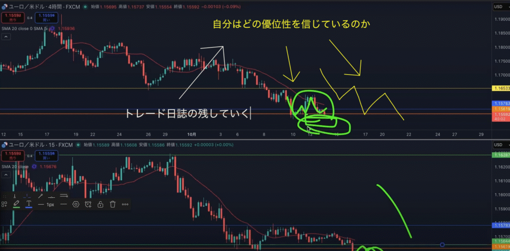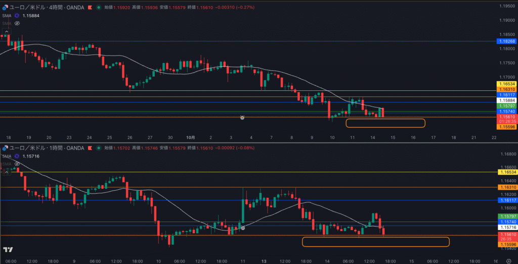 だが真下に1時間SMA、何度も止められているのを見ていると白色の矢印では入れなかった
