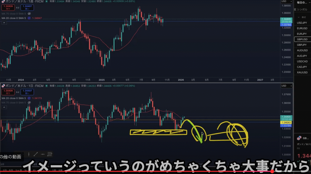 - 日足の確定は1日の終わりなので サポレジを動かさない