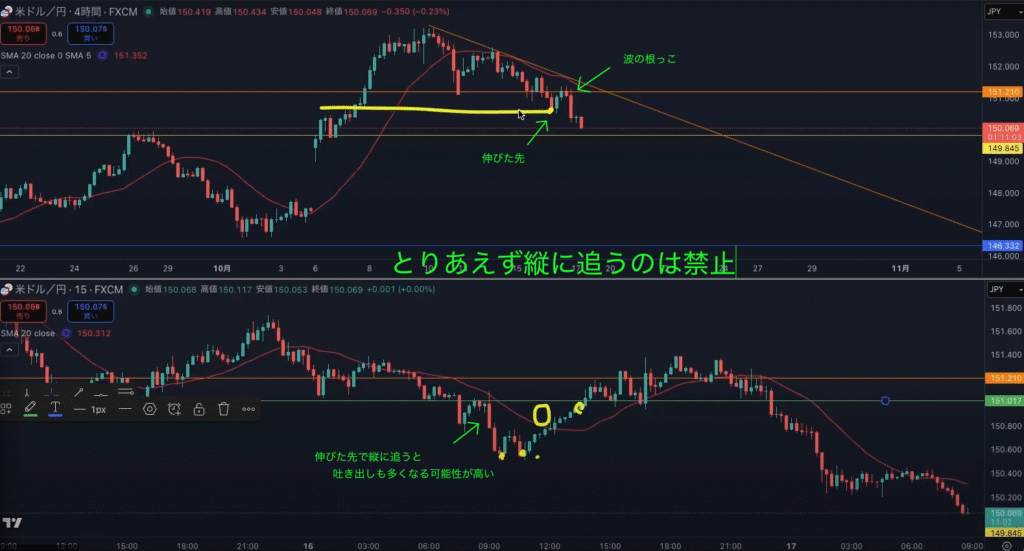 - 波と市場参加者の心理がどうなっているのか、がまず大事。