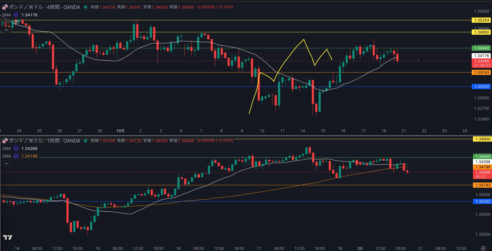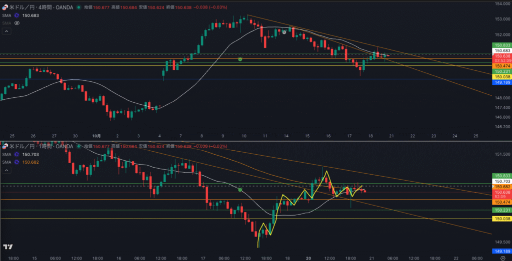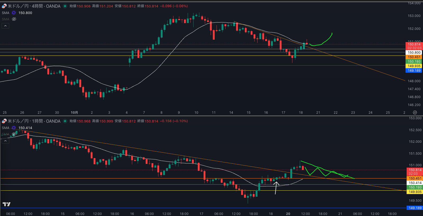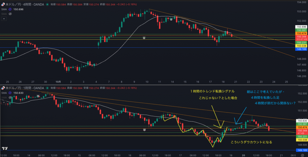 4時間レジスタンスを背に1時間が下目線になったらエントリー