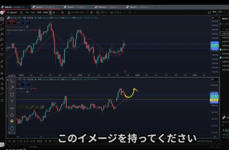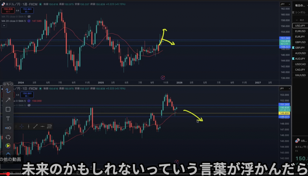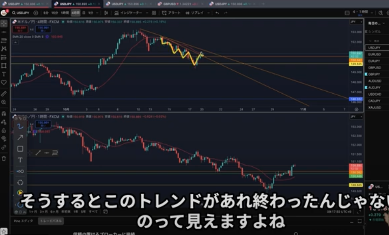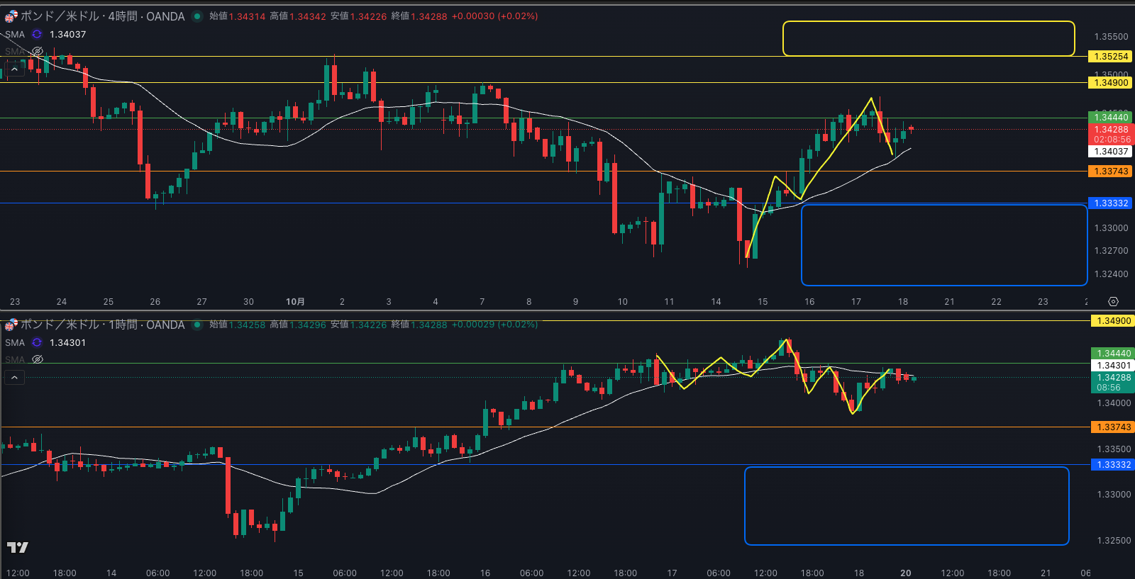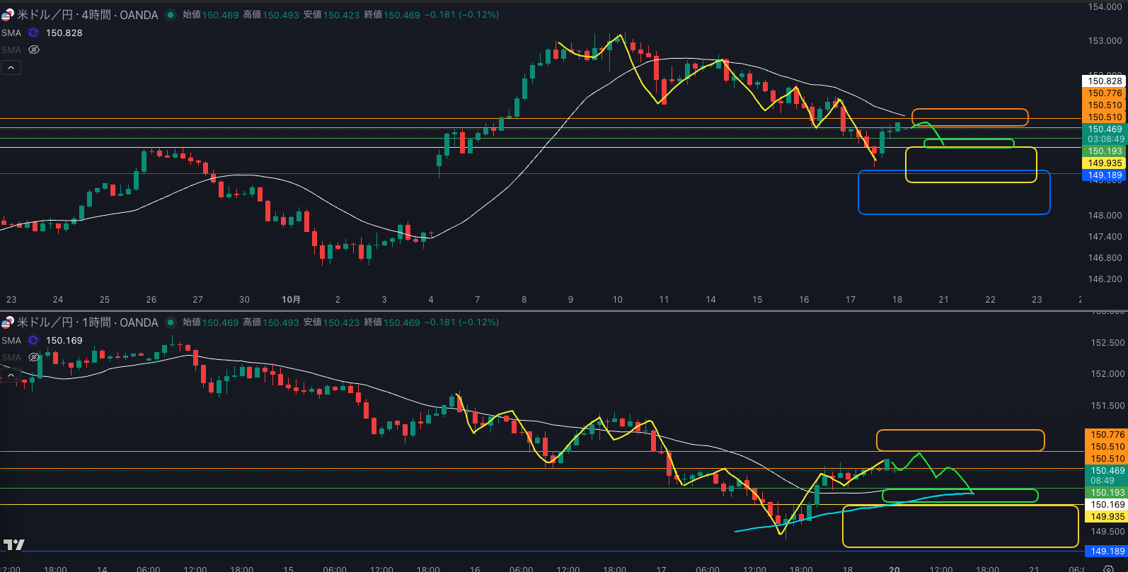 - 流れは日足も戻り売りの中の4時間足がどう作られていくか観察していく