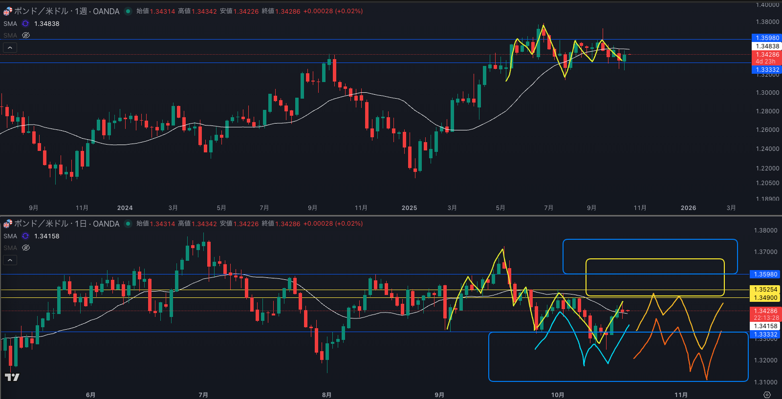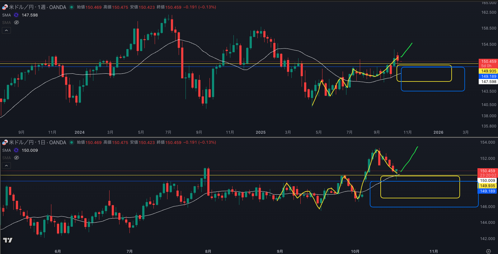 後、週足サポート付近で作った日足の団子が気になるここは固くなるのか観察していく