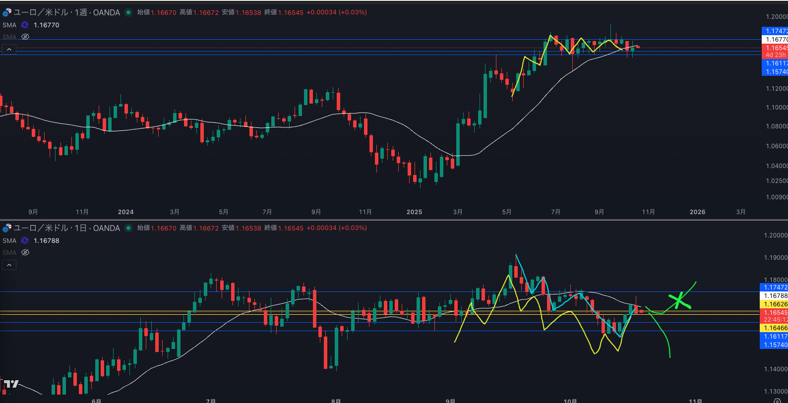 - 日足の確定は1日の終わりなので サポレジを動かさない
