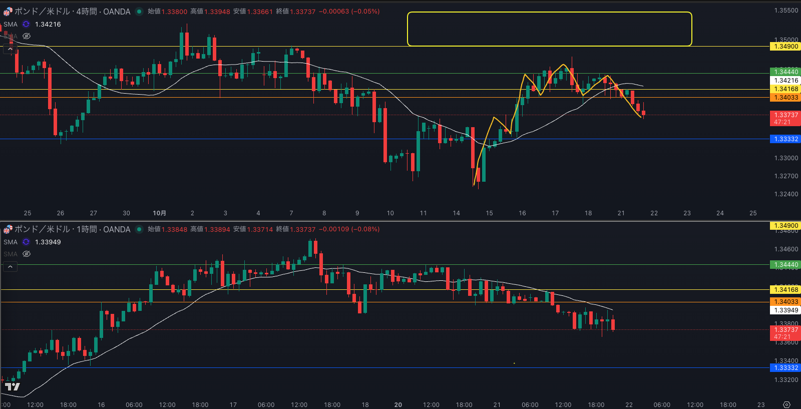 SMA・4時間SMAは上昇から横 売り抑えがいる