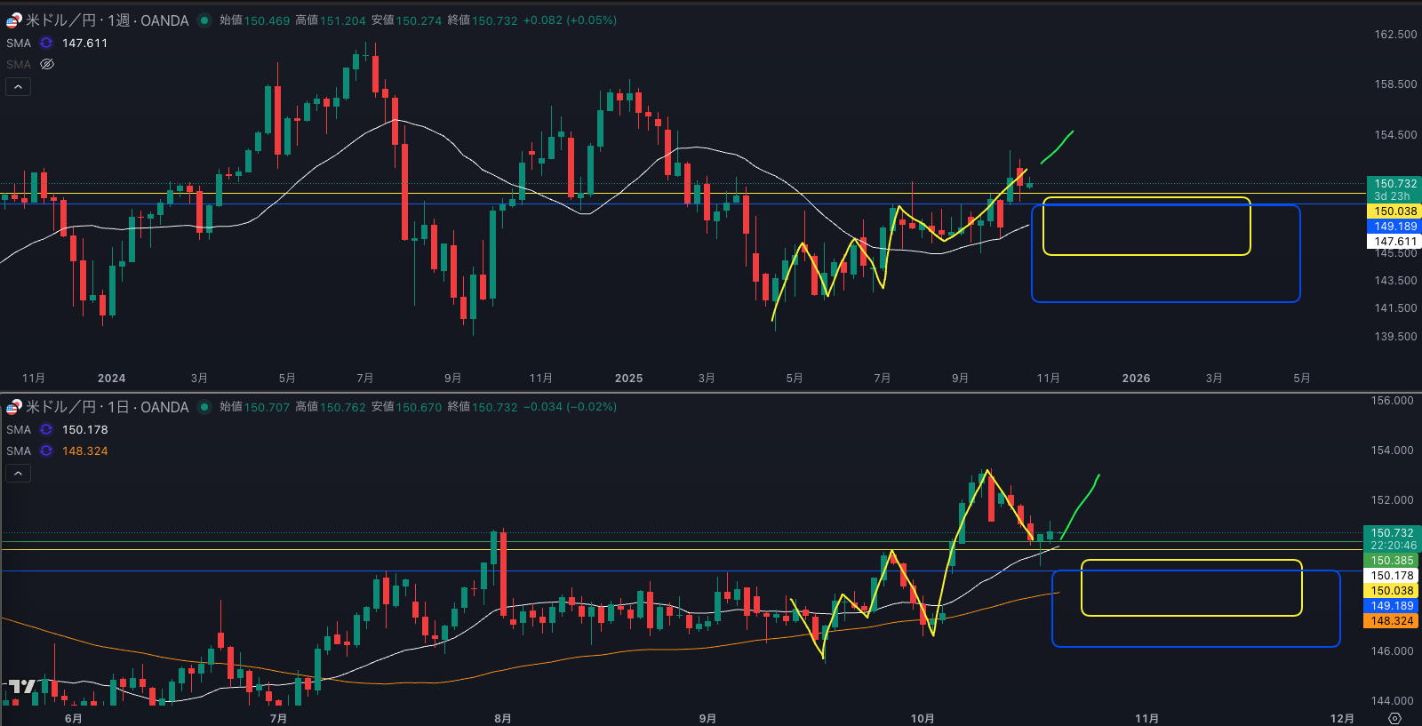 - 日足の確定は1日の終わりなので サポレジを動かさない
