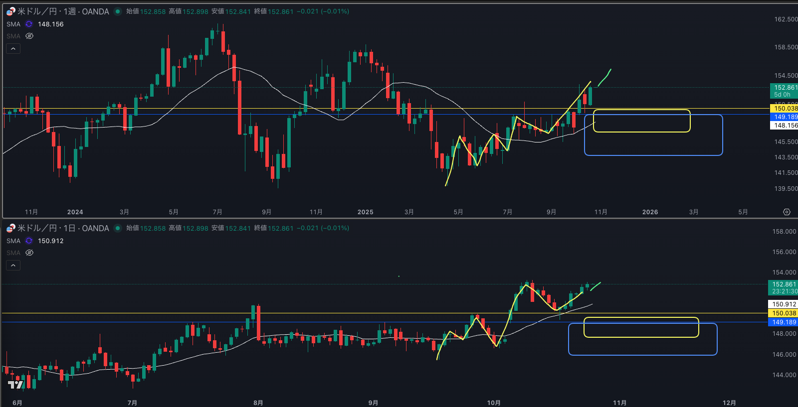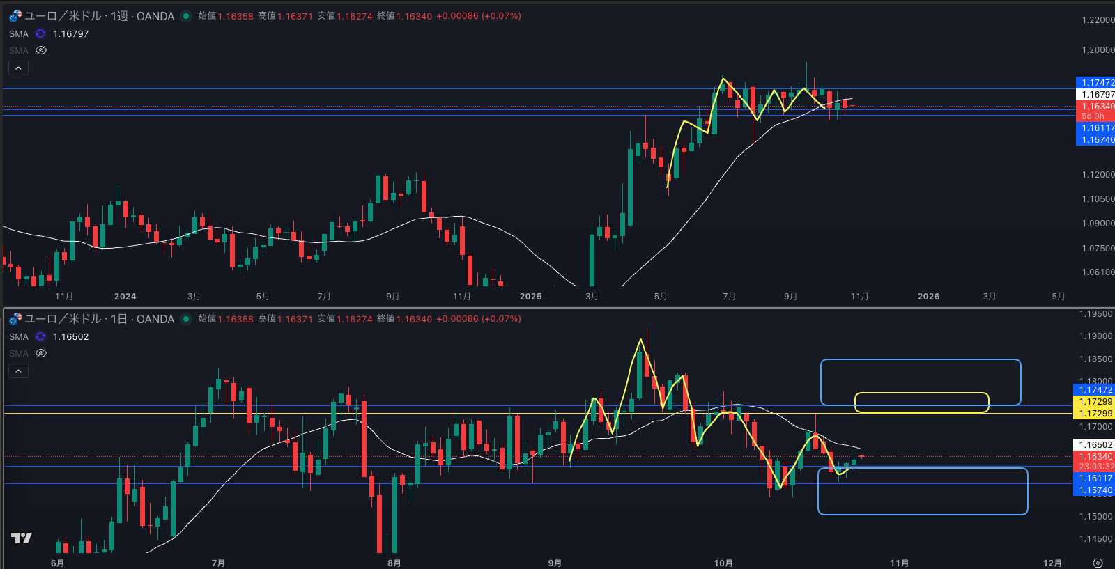 SMA・週足SMAは上昇 買い支えがいる