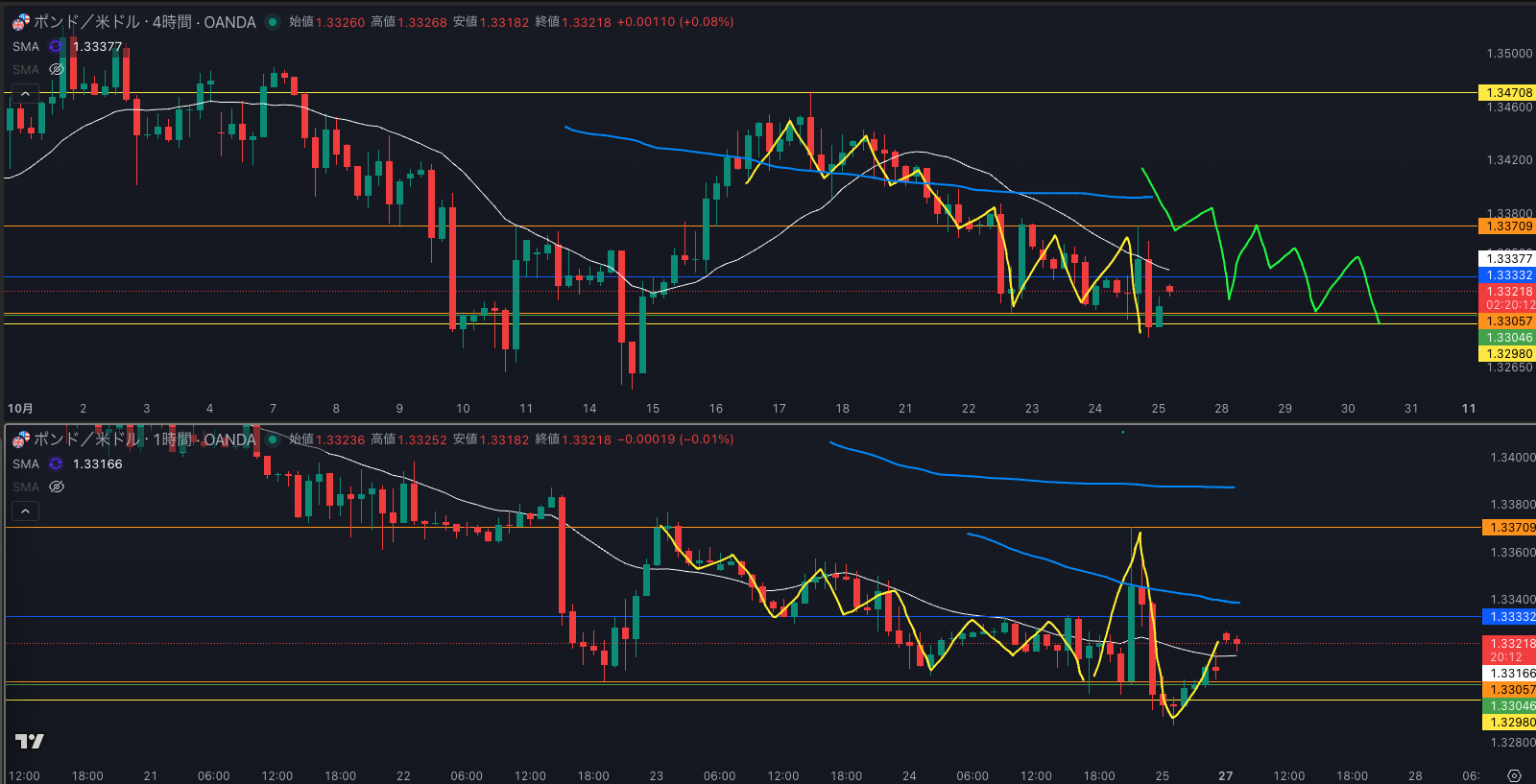 SMA・1時間SMAは下降 売り抑えがいる