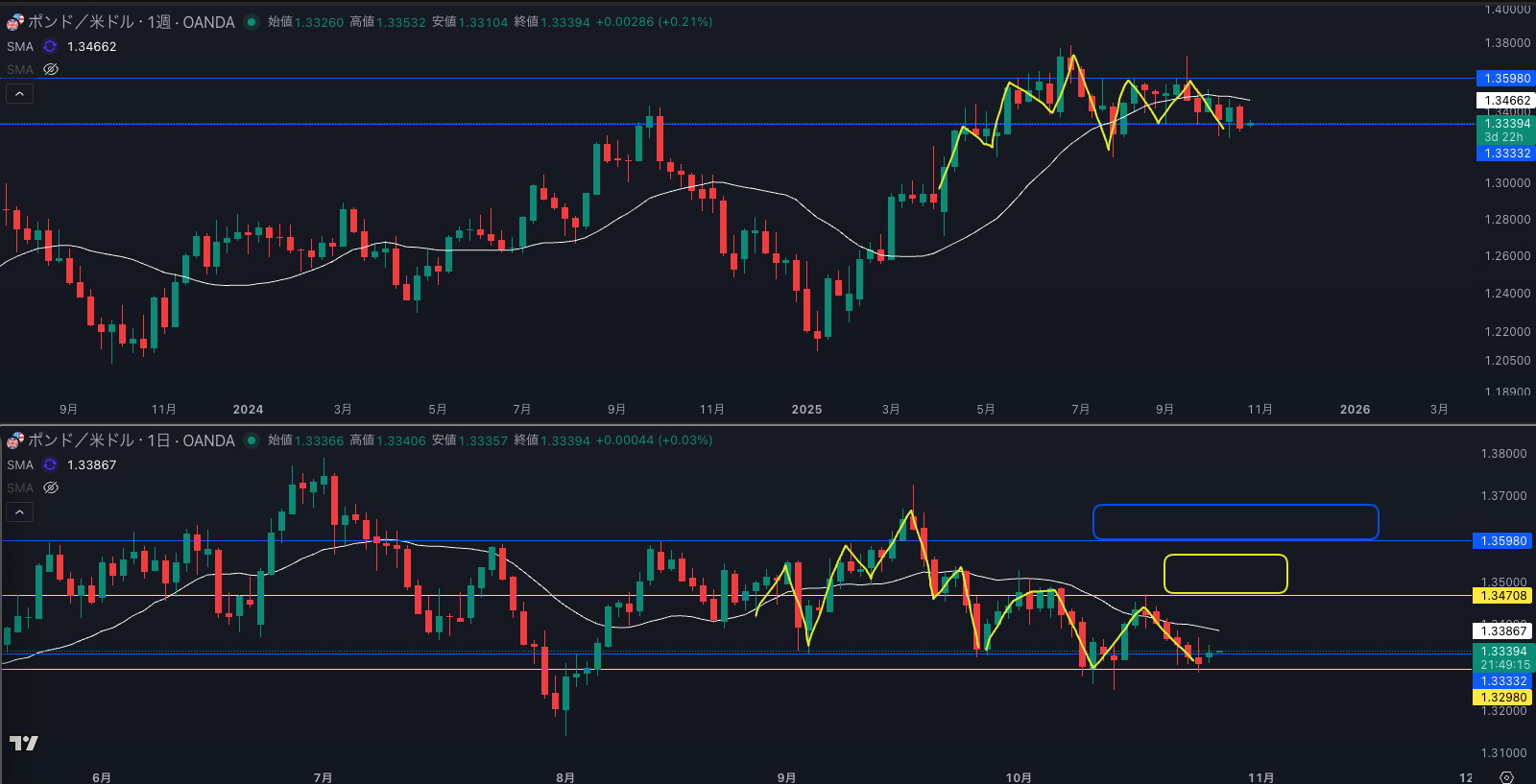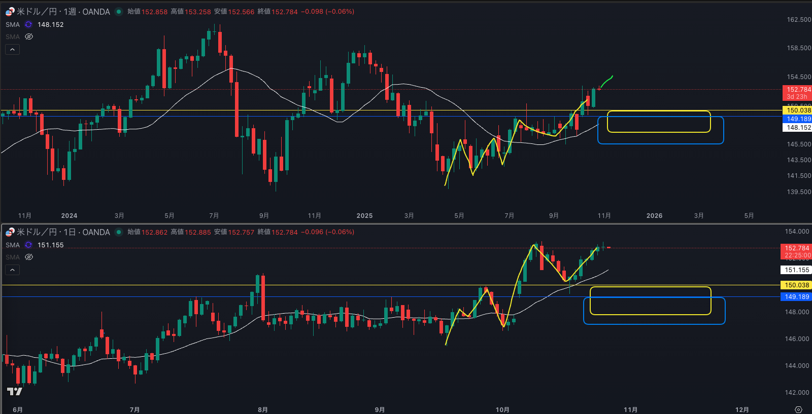 ここからは、日足SMAが邪魔してくるので手がでない