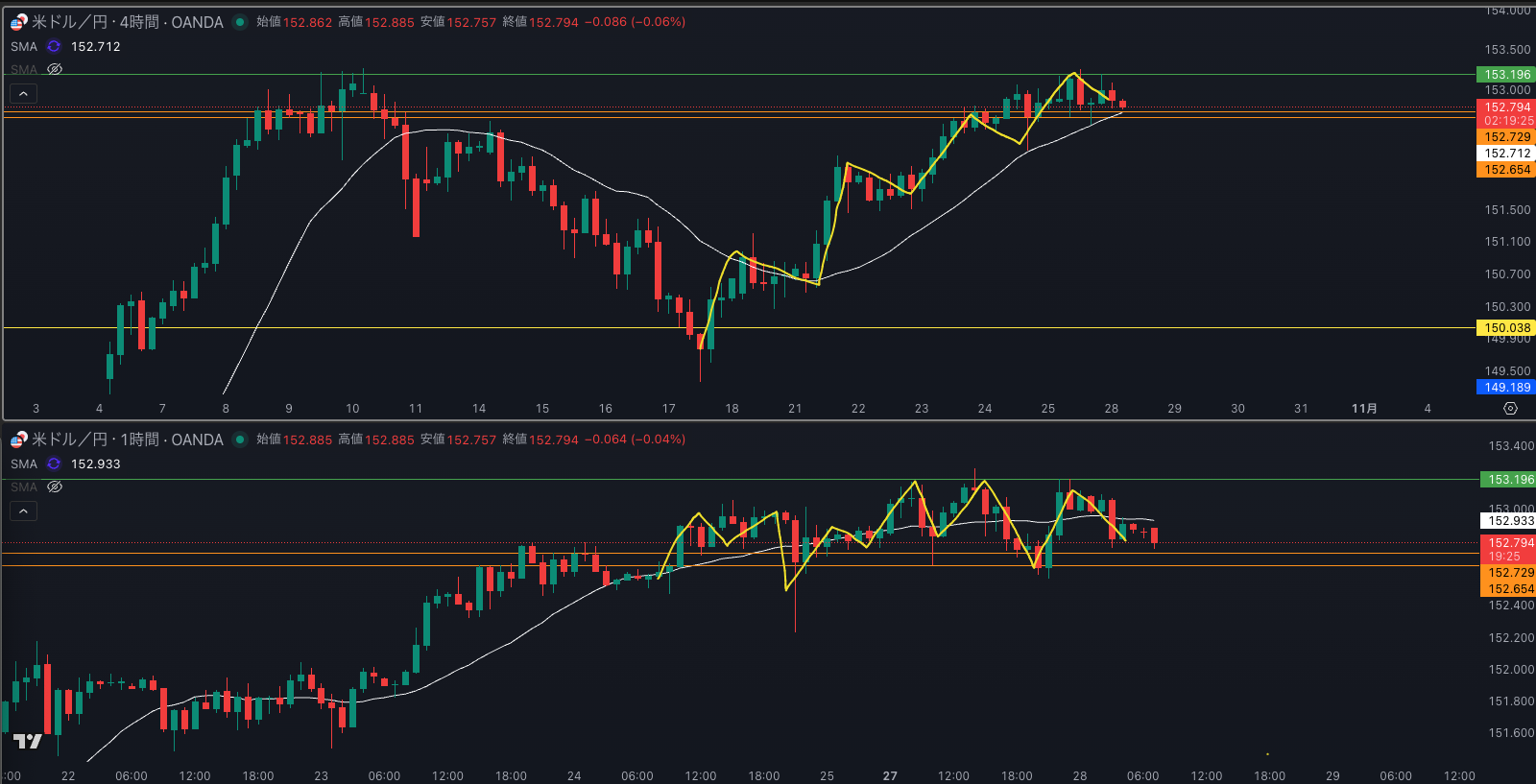 4時間の売り抑えのところに日足SMAもいて