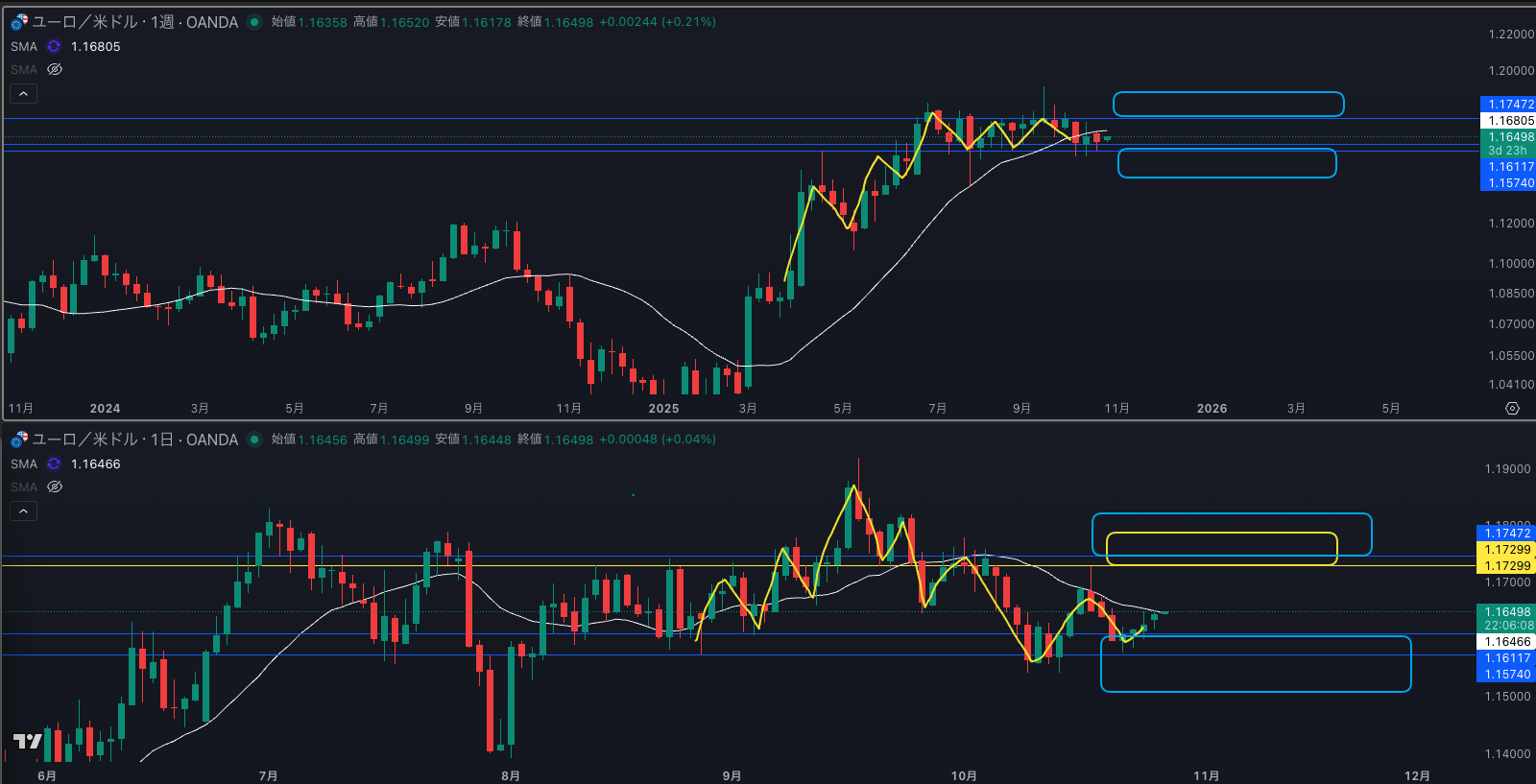 SMA・週足SMAは上昇 買い支えがいる