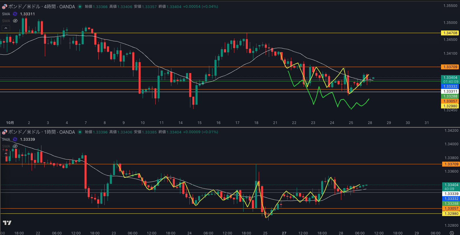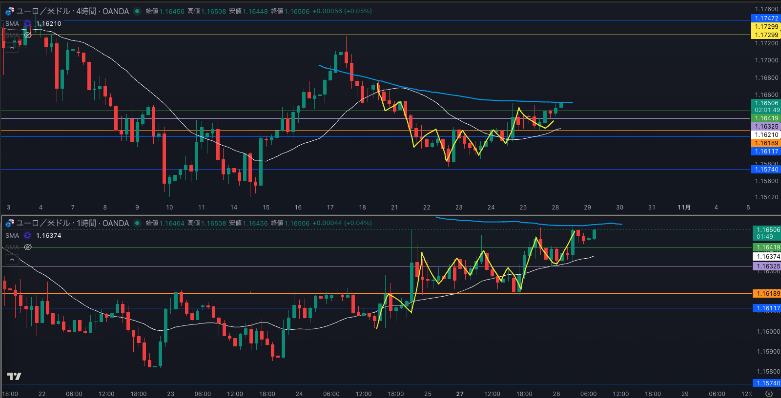 SMA・4時間SMAは上昇から少し横ばい 買い支えがいる