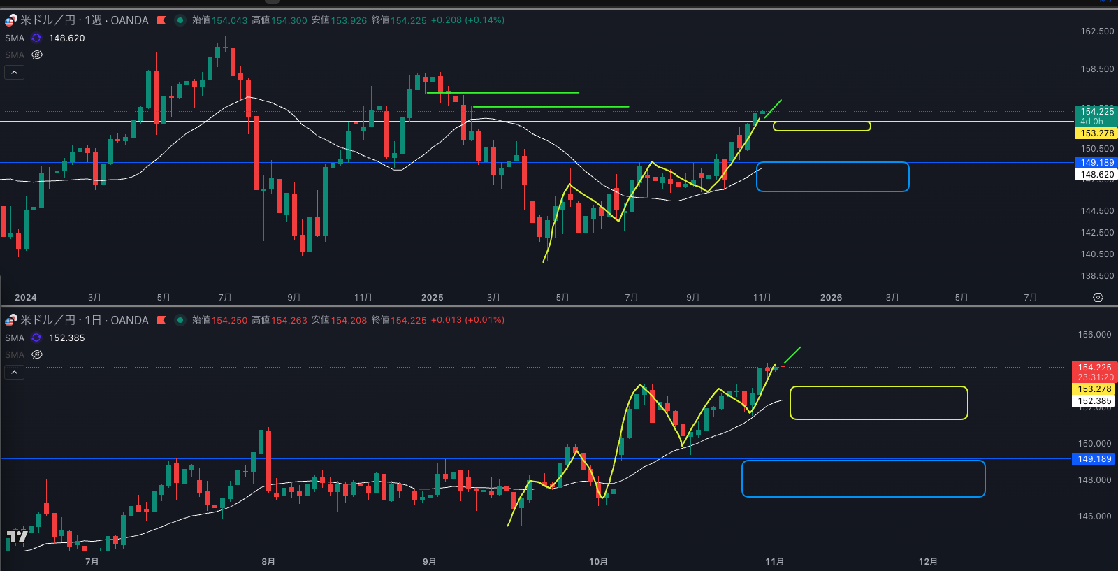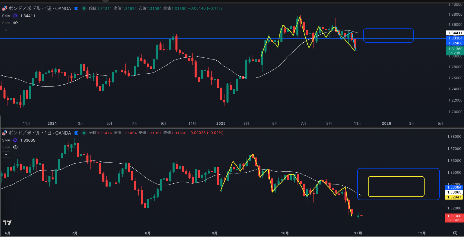 - 日足の確定は1日の終わりなので サポレジを動かさない