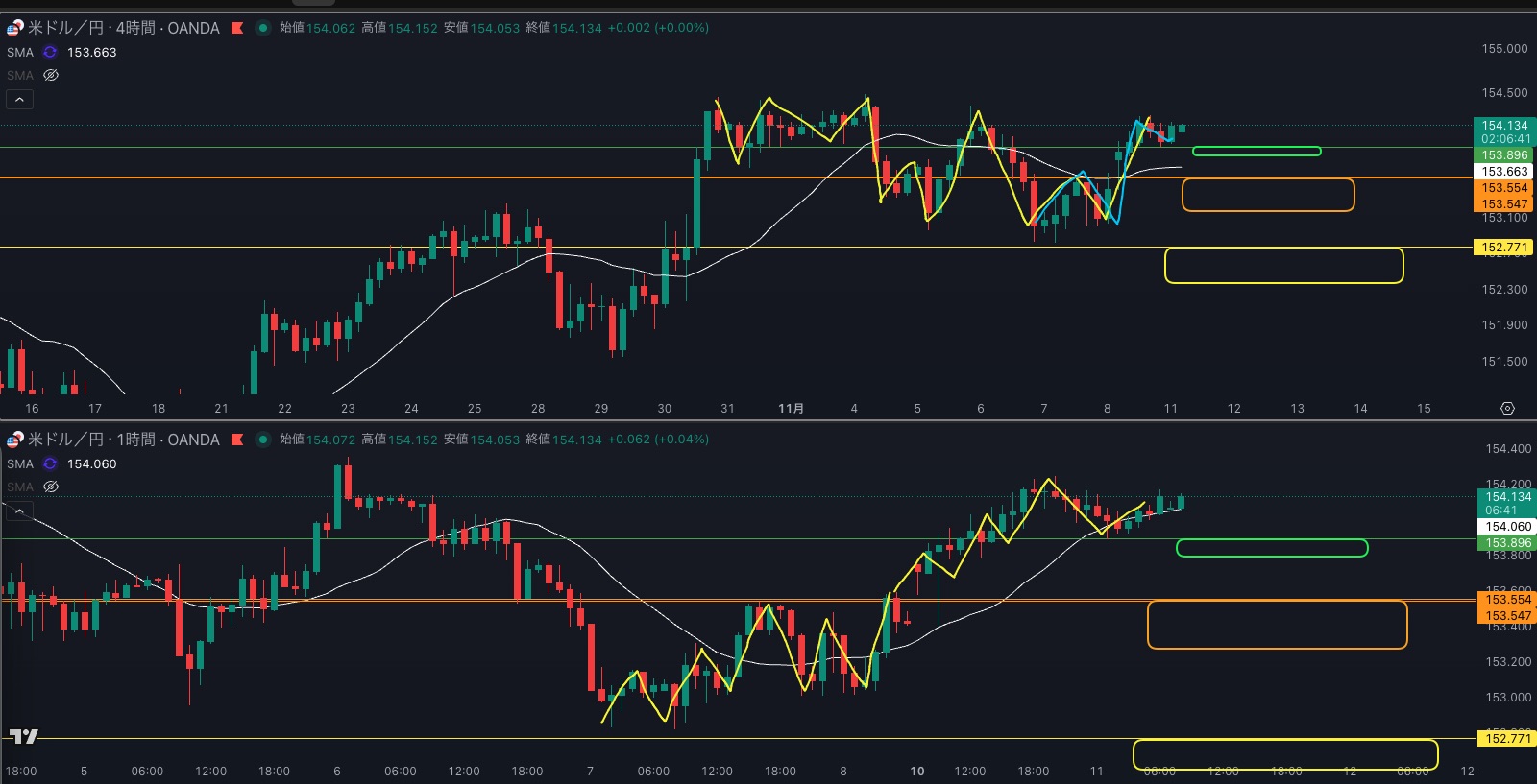 SMA・4時間SMAはヨコヨコ