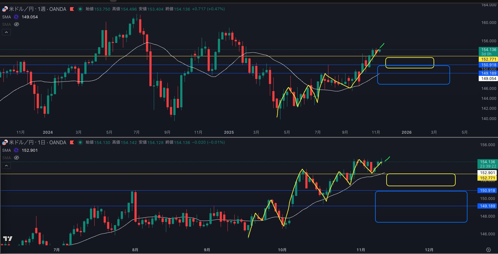 - 日足の確定は1日の終わりなので サポレジを動かさない