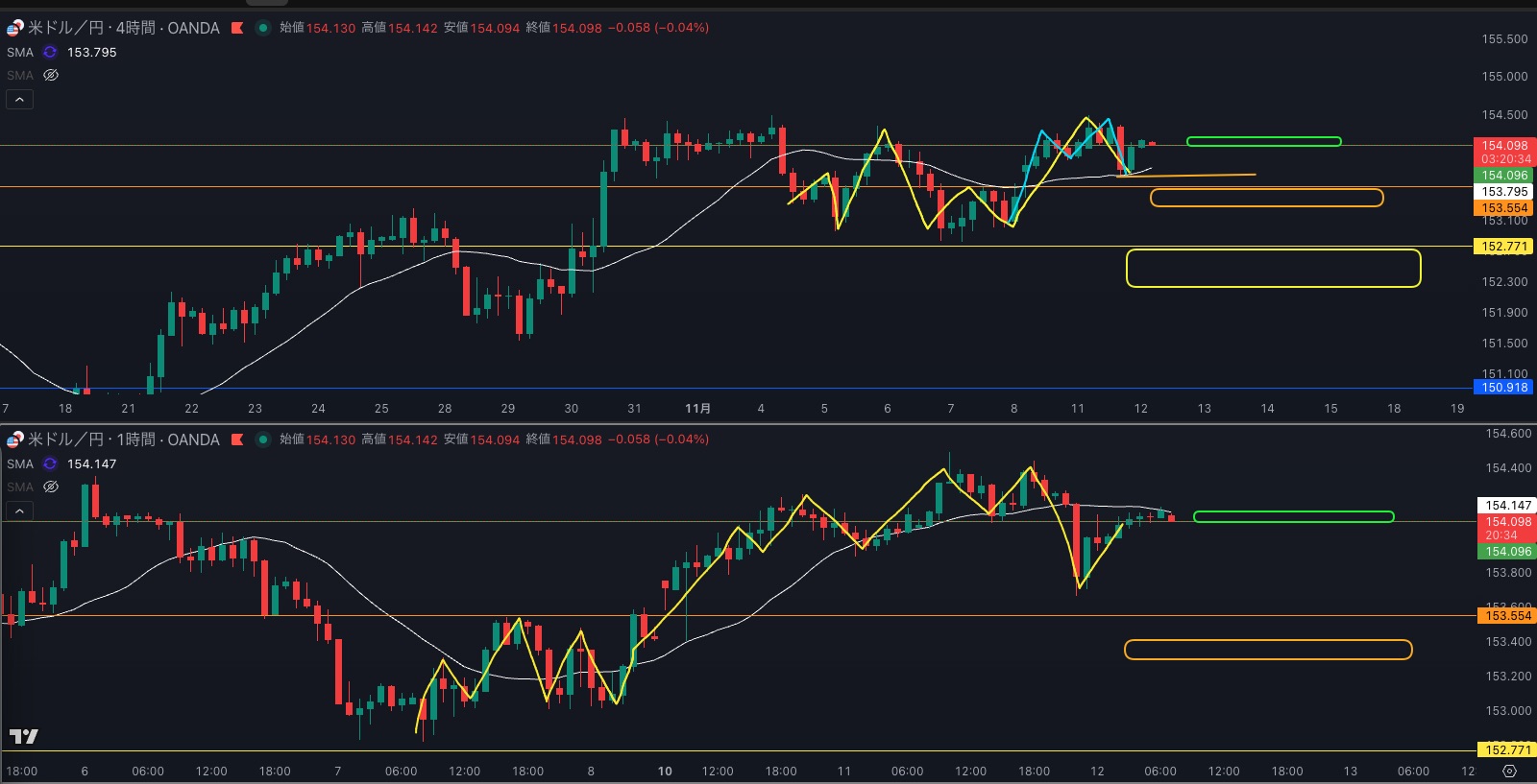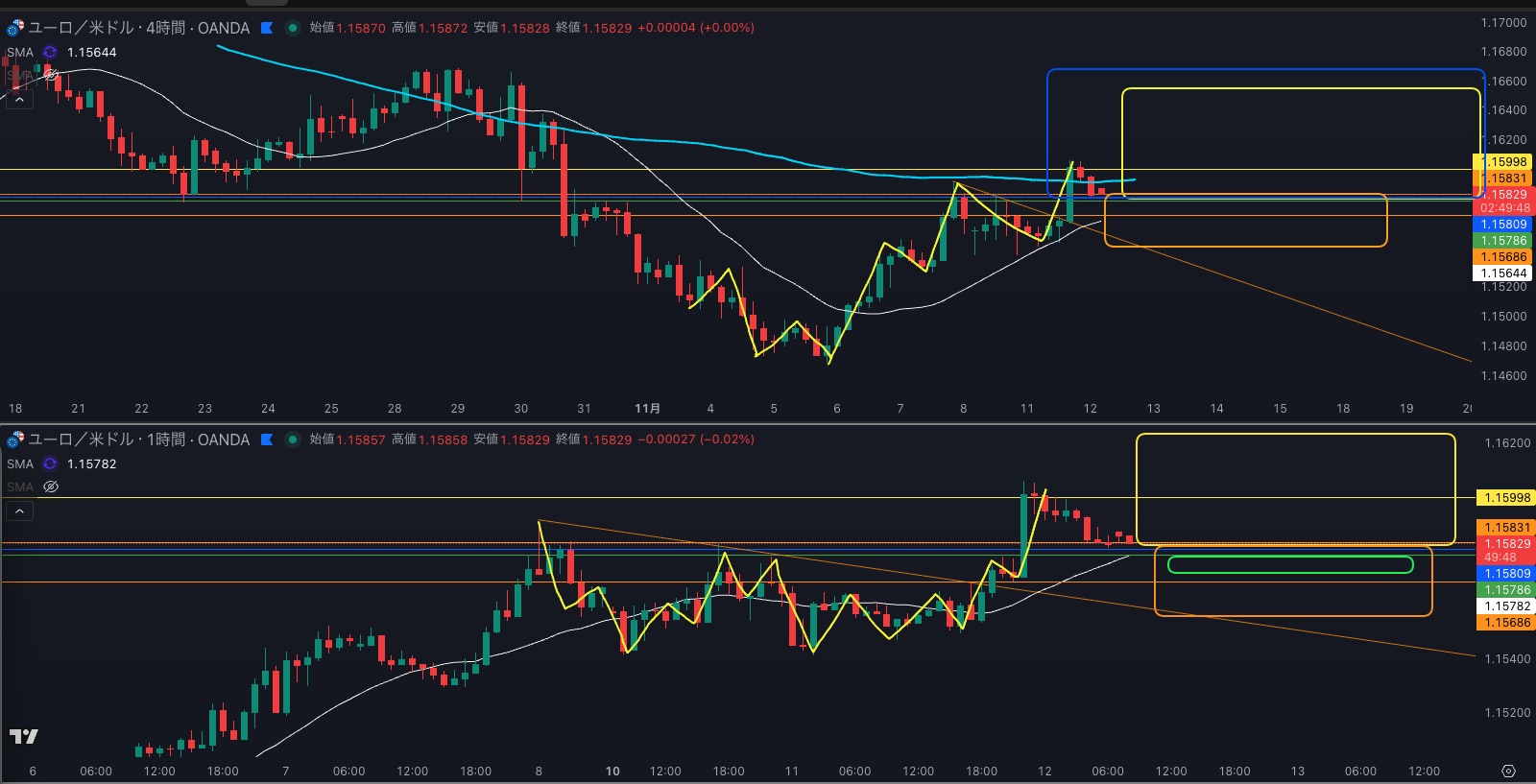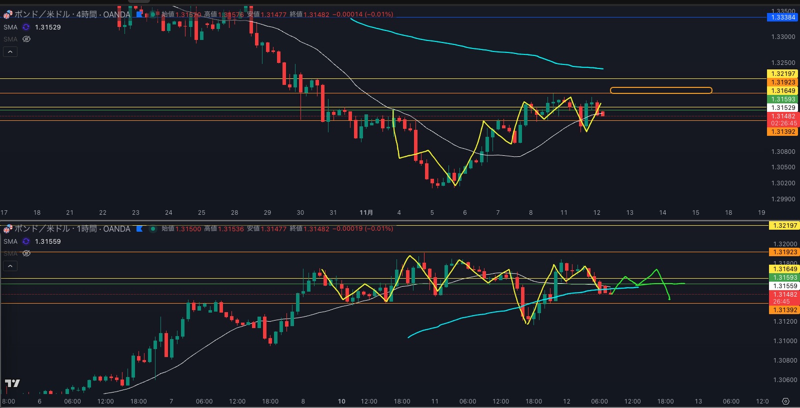 下には4時間押し目買い・4時間SMA 1時間押し目買い・1時間SMA - 売りと買いの攻防が激しそうなので ここは観察して行く
