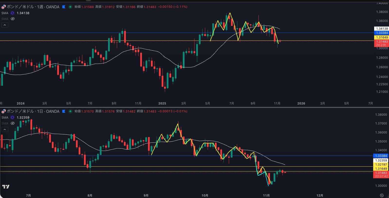 SMA・日足SMAも上昇→横ばい→上昇 買い支えがいる 減速している