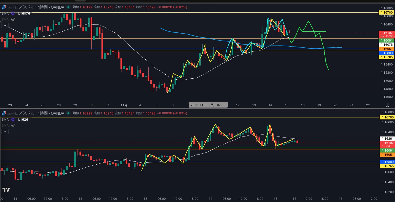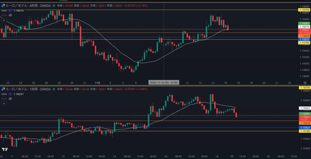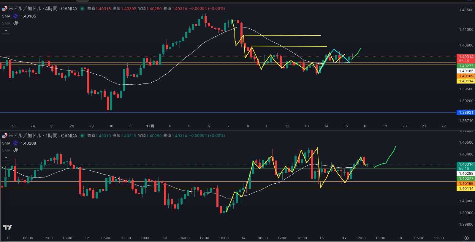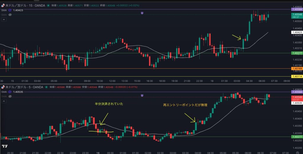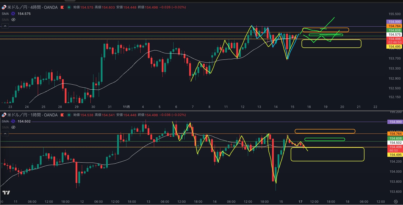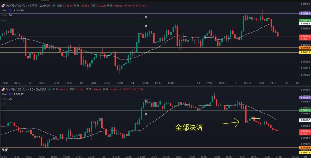 日足の買いをやり過ごして、4時間下目線に変わってから戻り売りを狙う
