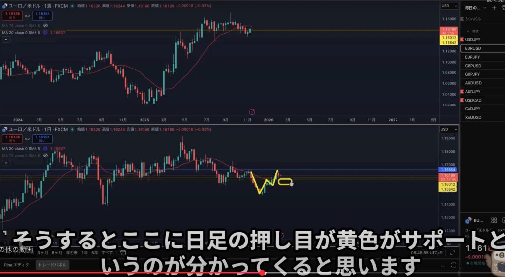 - 日足の確定は1日の終わりなので サポレジを動かさない