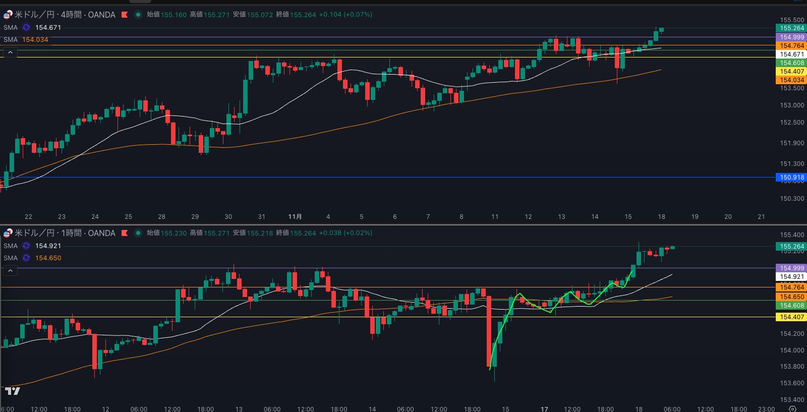 SMA・日足SMAは横向き 一旦はs下回ったが感覚的には押し目買いエリア