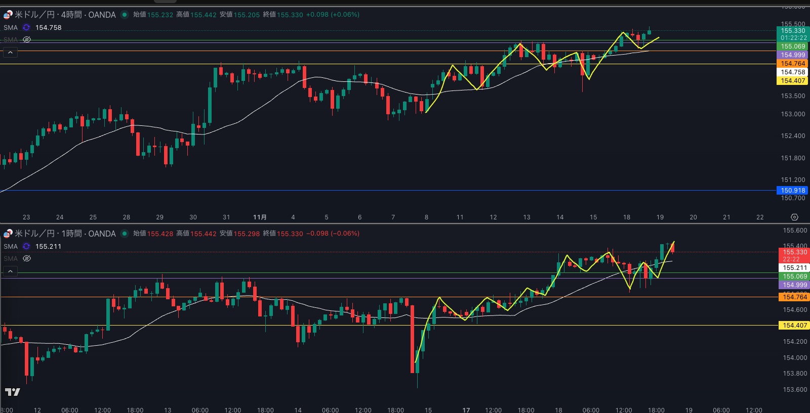 SMA・4時間SMAは上昇 買い支えがいるが減速している