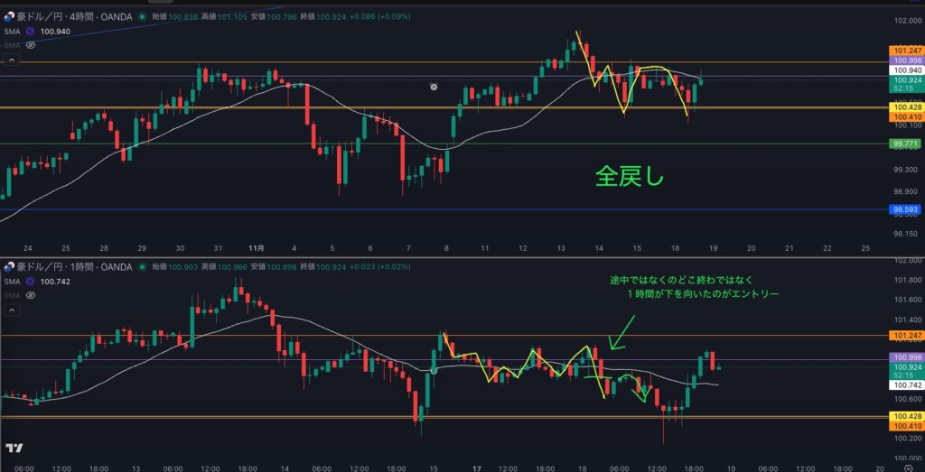 4時間の戻り売りで日足のサポートを試す・・といったことも考えたが、