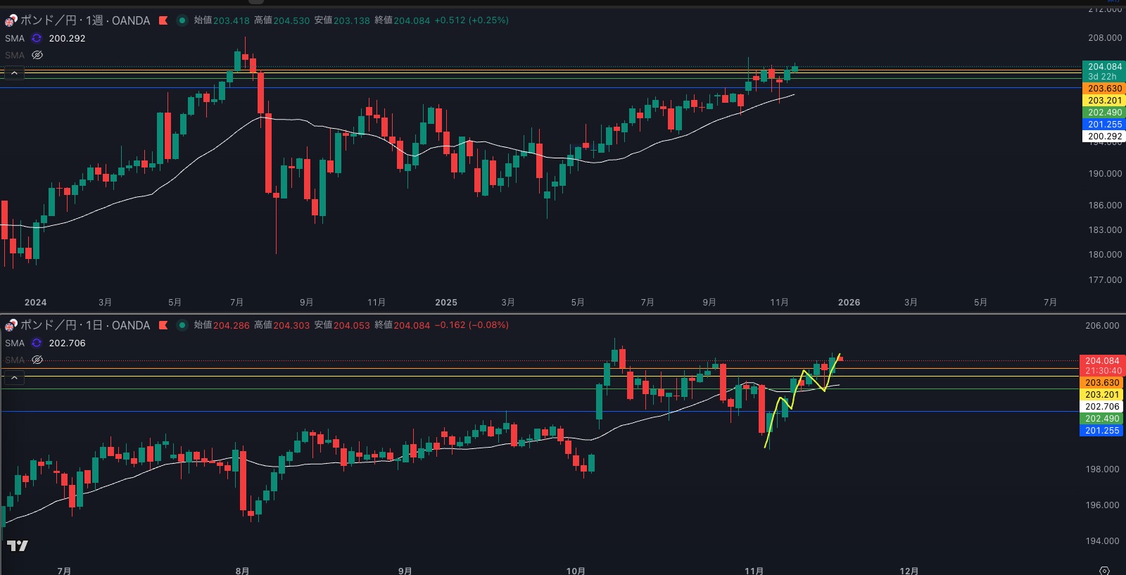 - 日足の確定は1日の終わりなので サポレジを動かさない