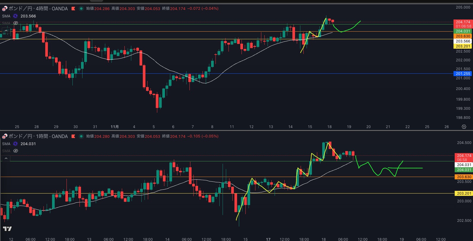 4時間のサポートが効いてくるか見て行く - 4時間SMAが減速している