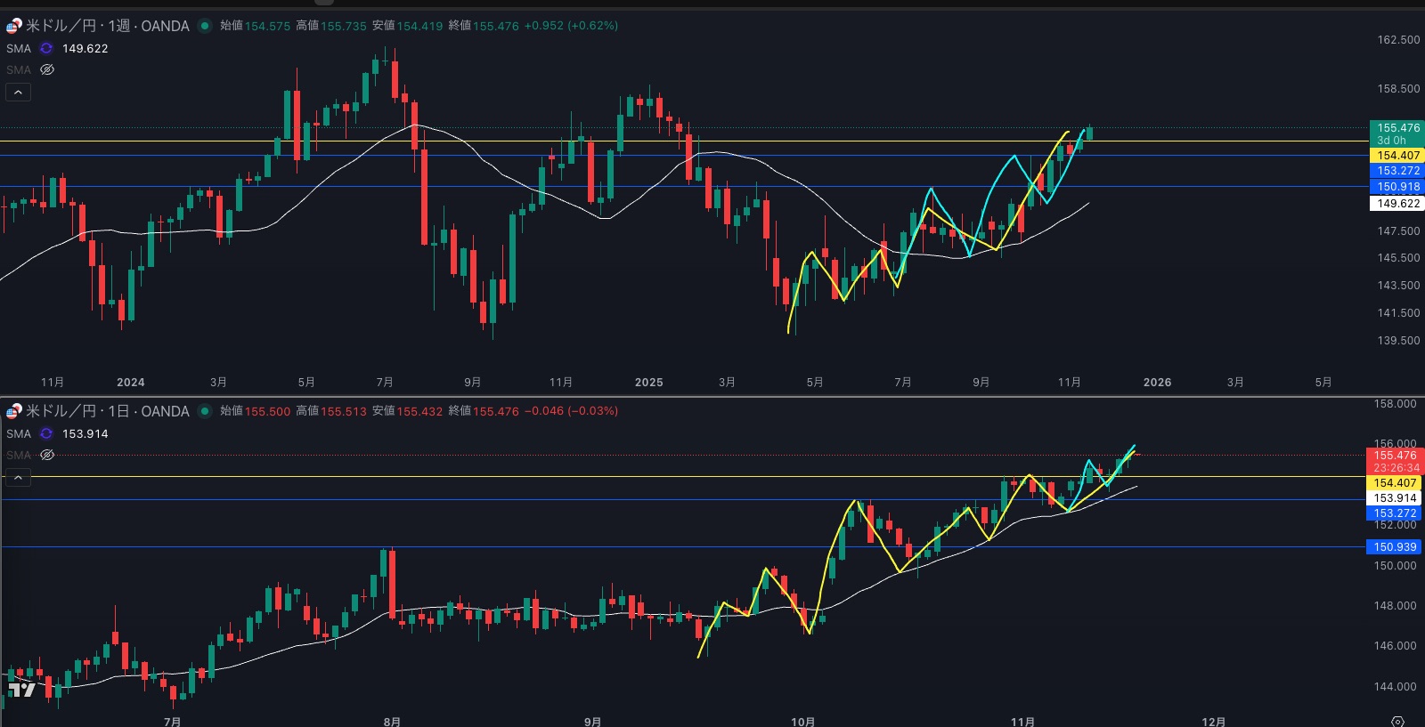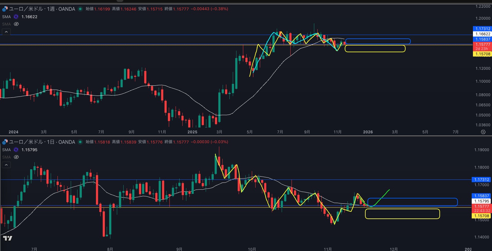 - 日足の確定は1日の終わりなので サポレジを動かさない