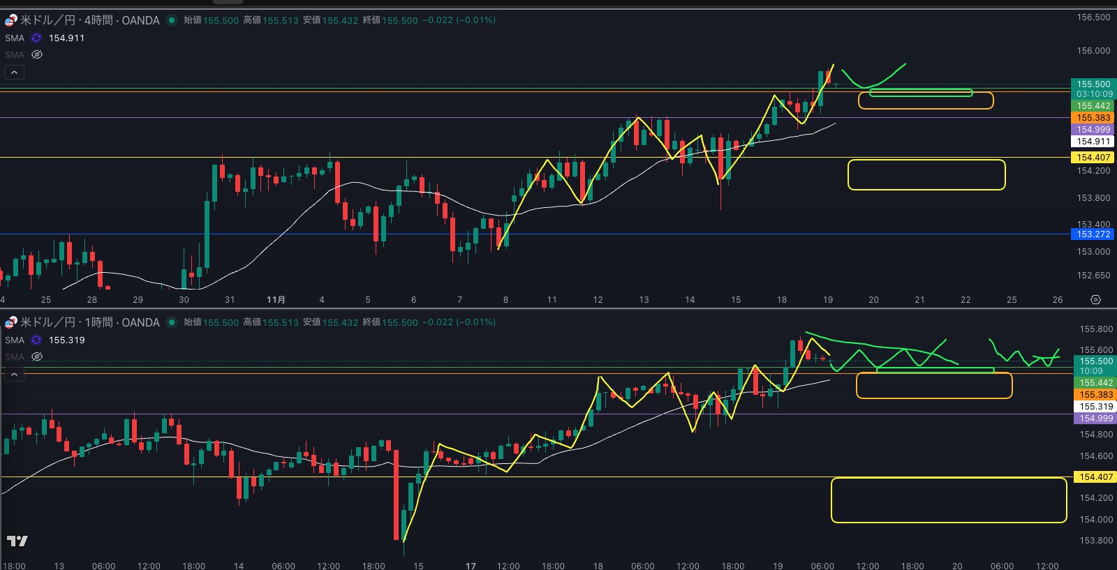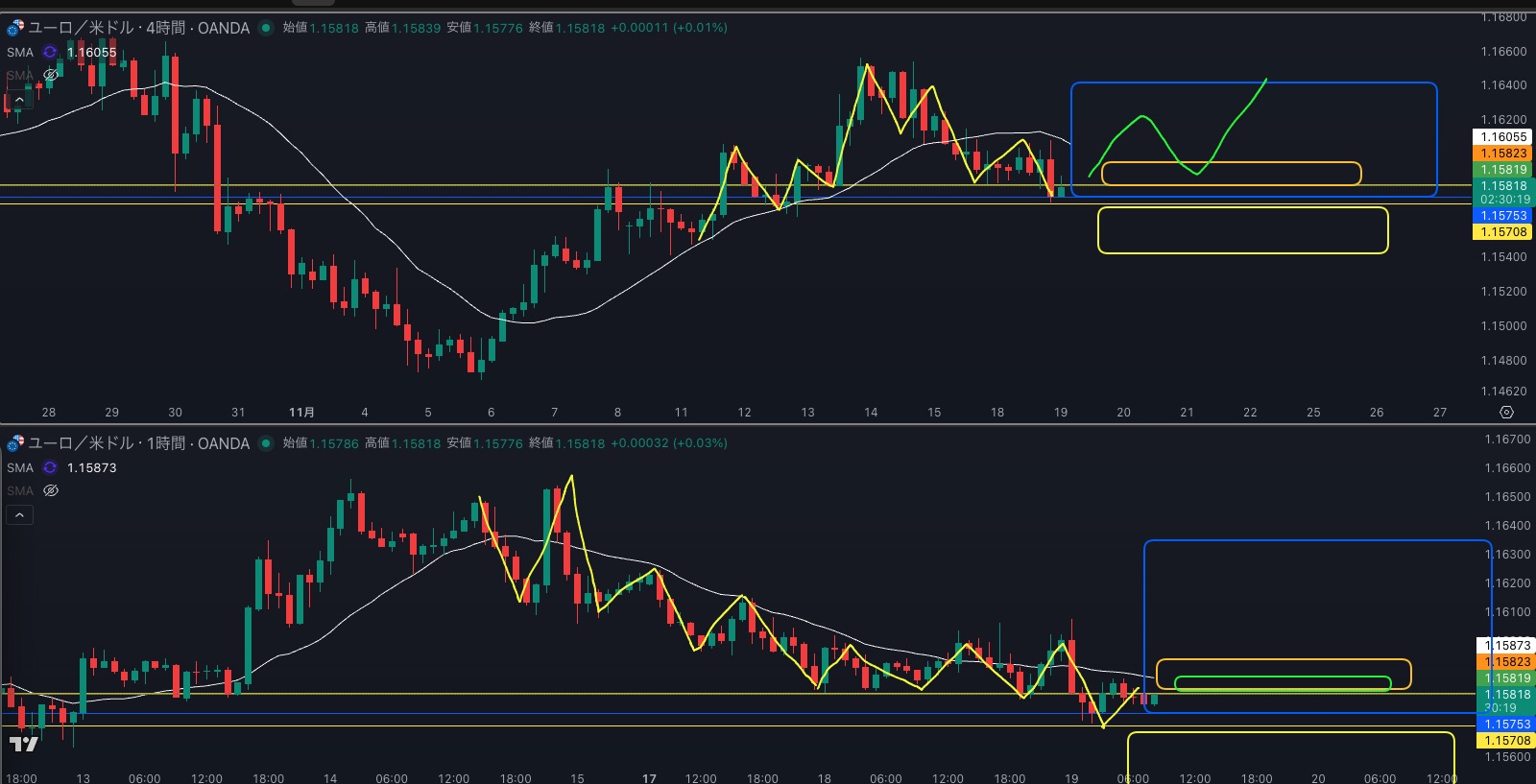 SMA・4時間SMAは上昇から減速 売り抑えがいる