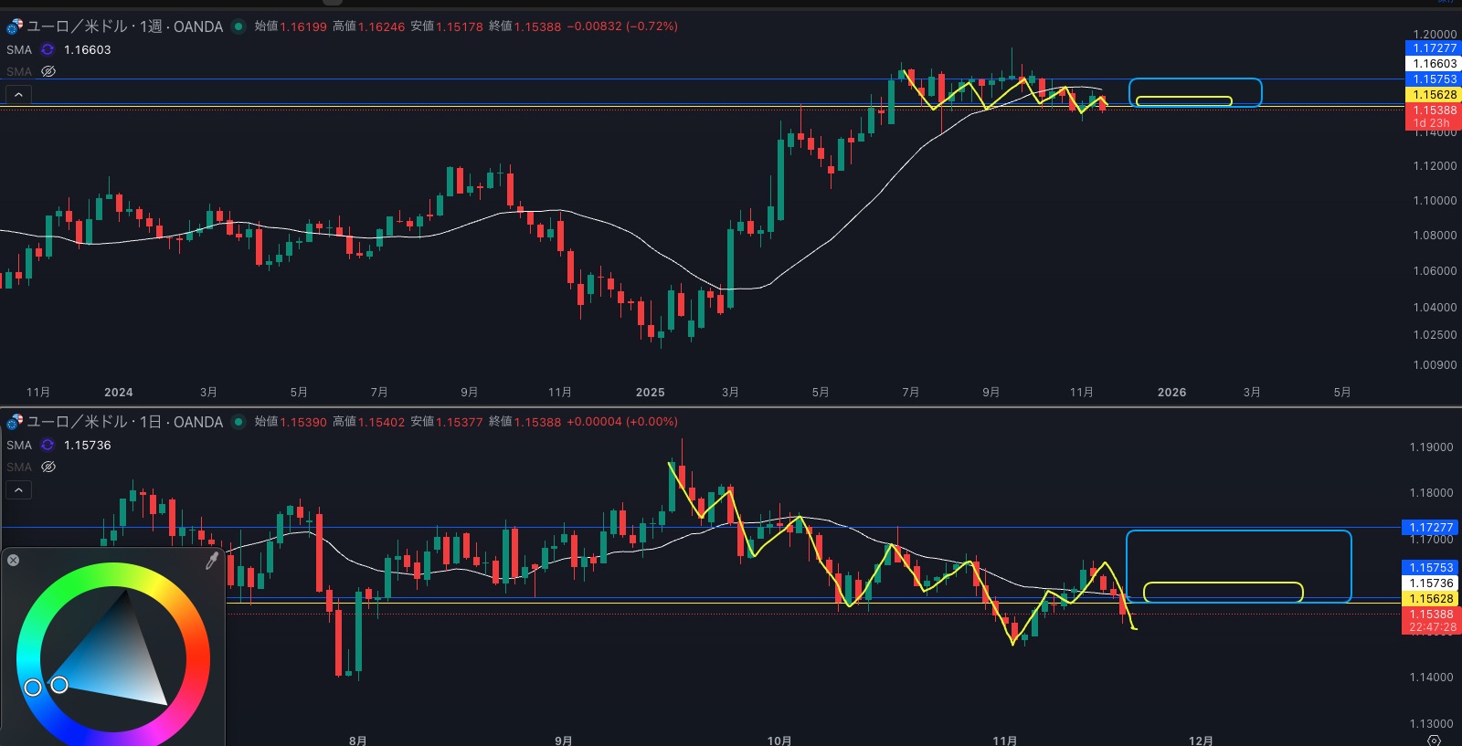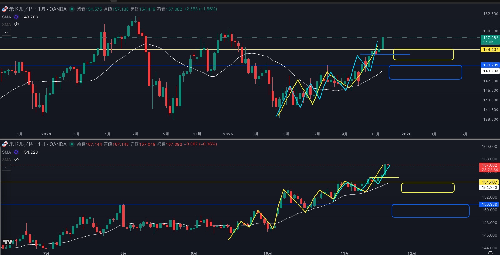 SMA・週足SMAは上昇 買い支えがいる