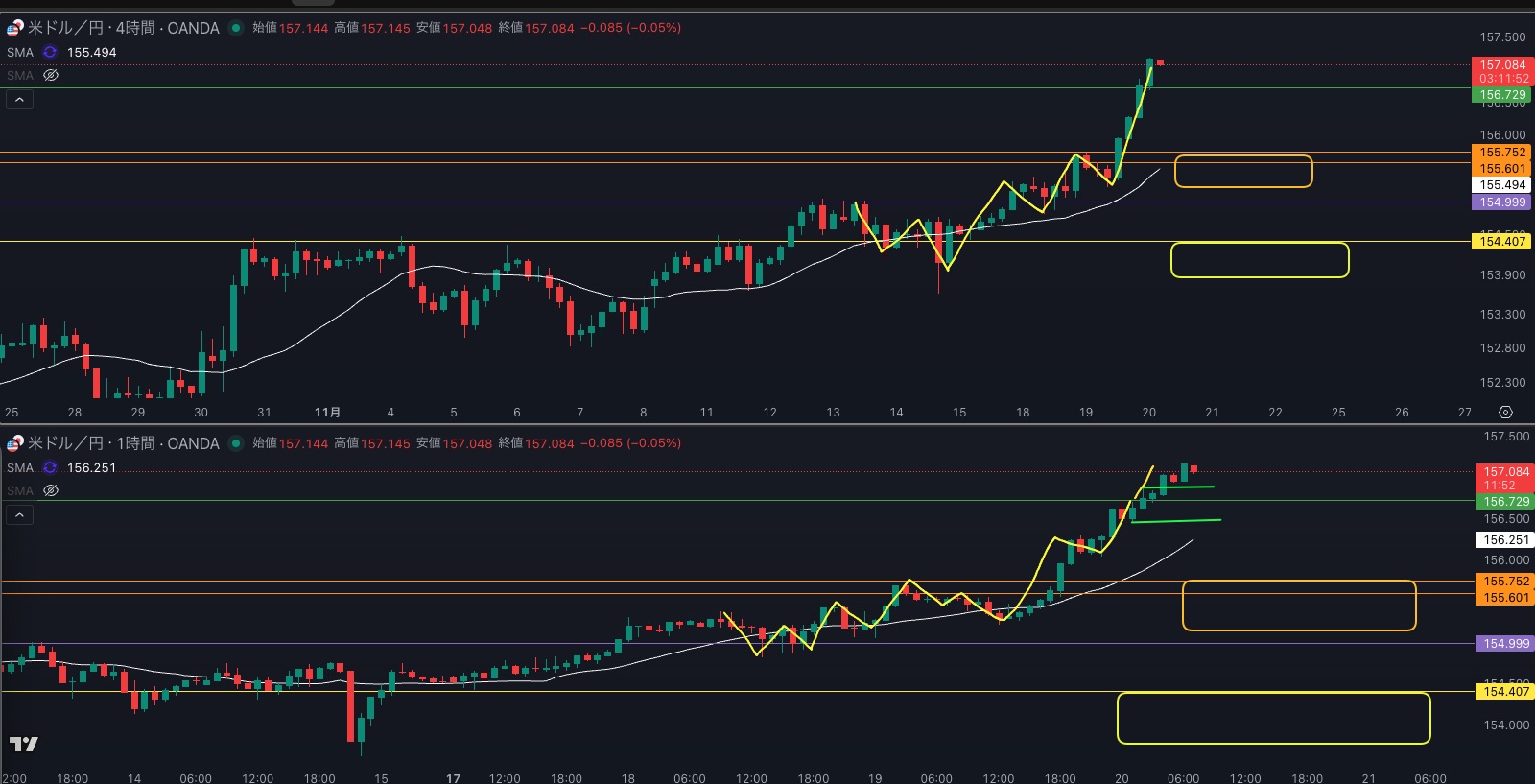 SMA・4時間SMAは上昇 買い支えがいる