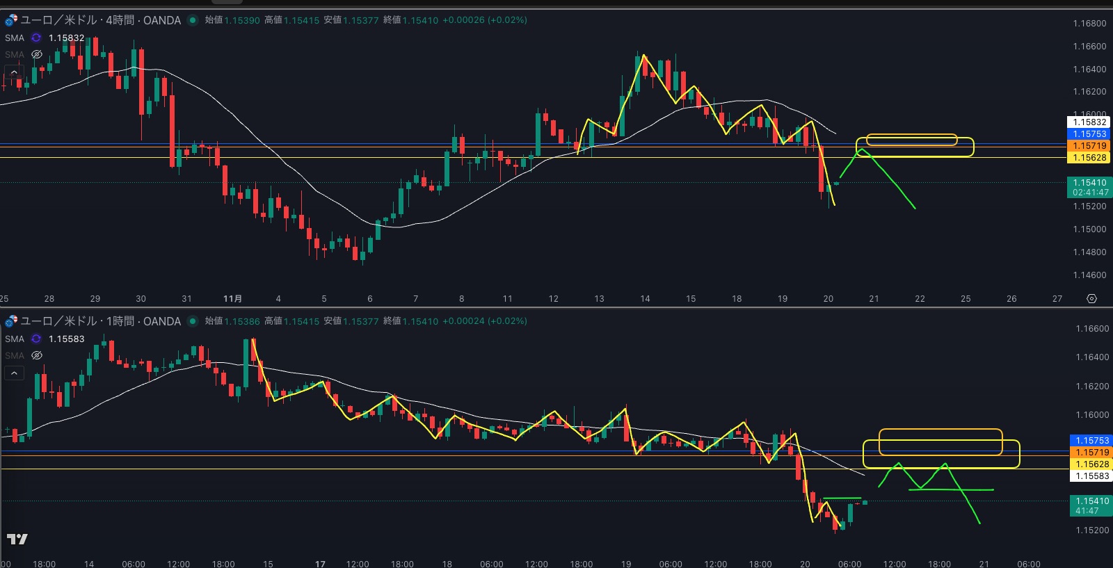 SMA・1時間SMAは下降 売り抑えがいる