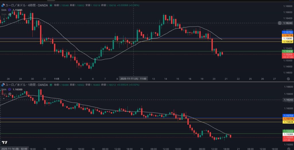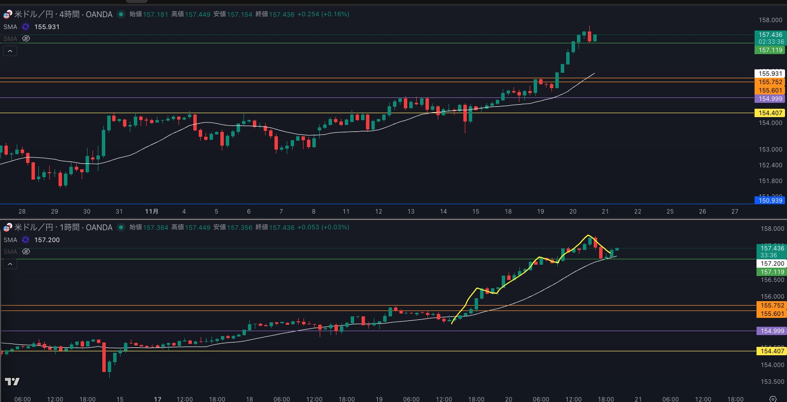 だが、4時間サポートと4時間SMAの推移を考えると微妙