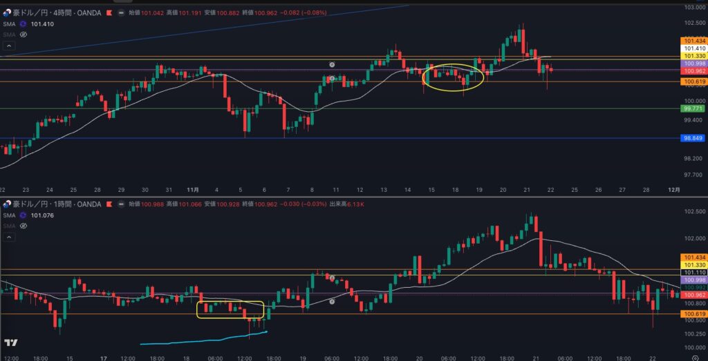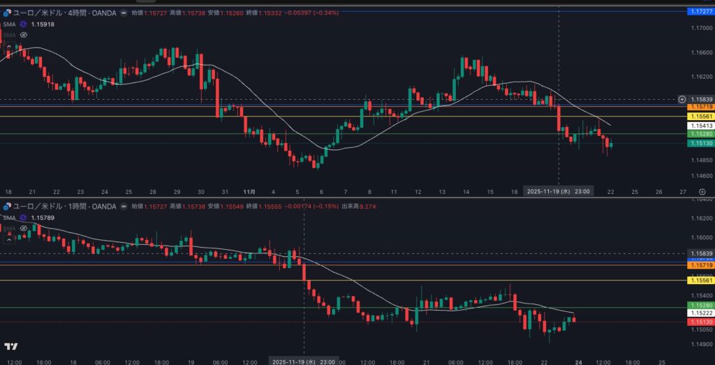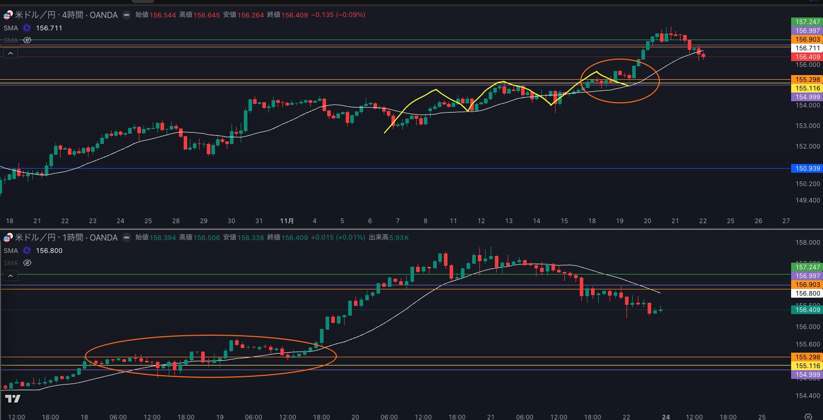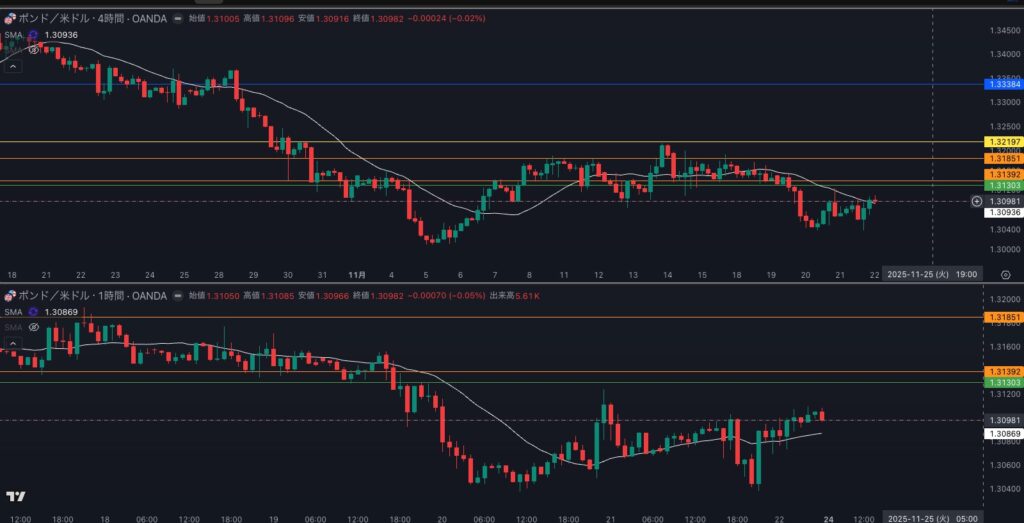 - 日足のSMAの売り抑えで上へは手が出なかった