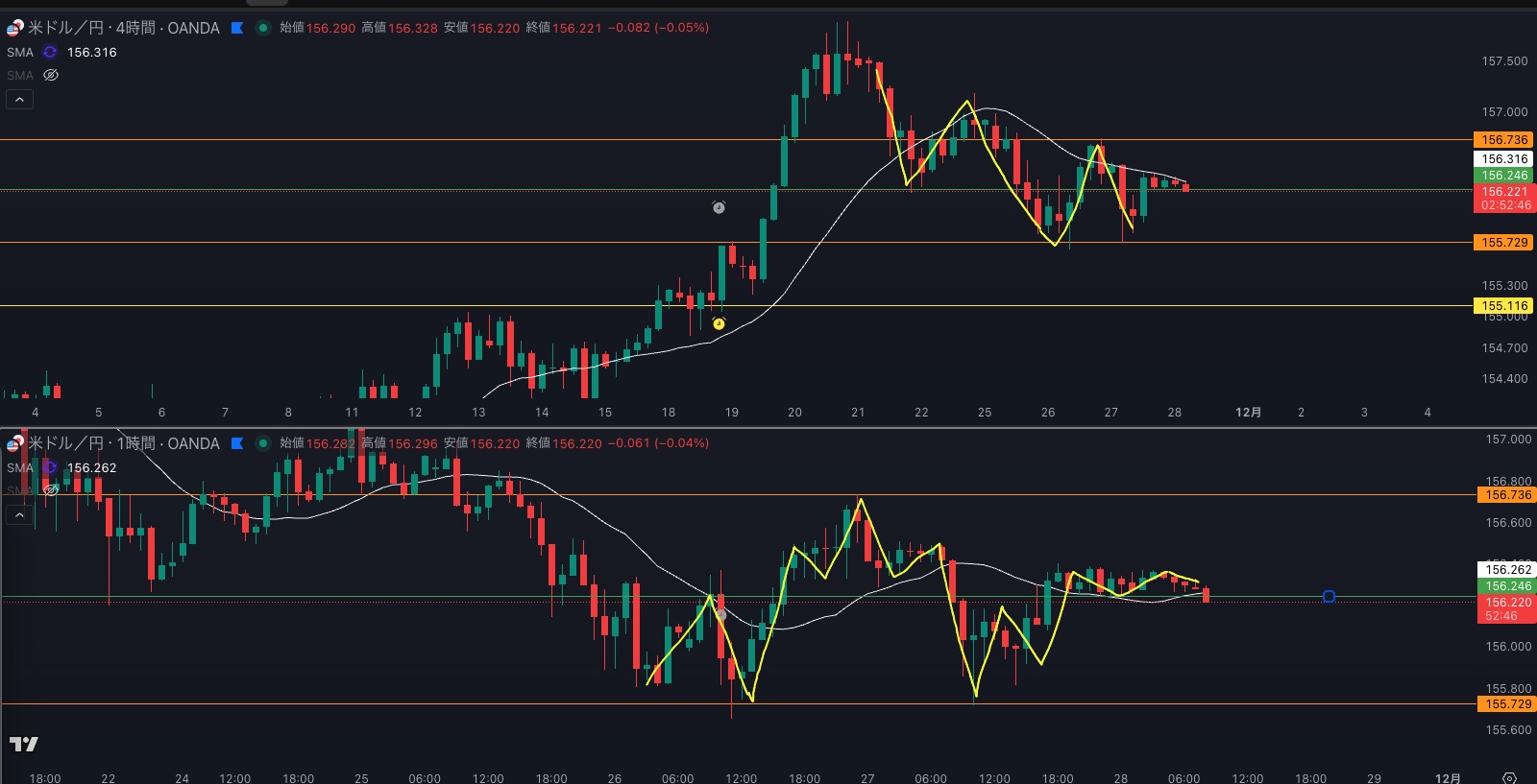 - 日足の確定は1日の終わりなので サポレジを動かさない