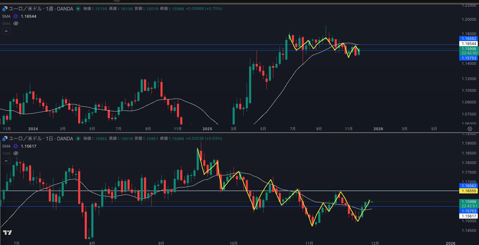 SMA・日足SMAは下降から上昇 買い支えがいる