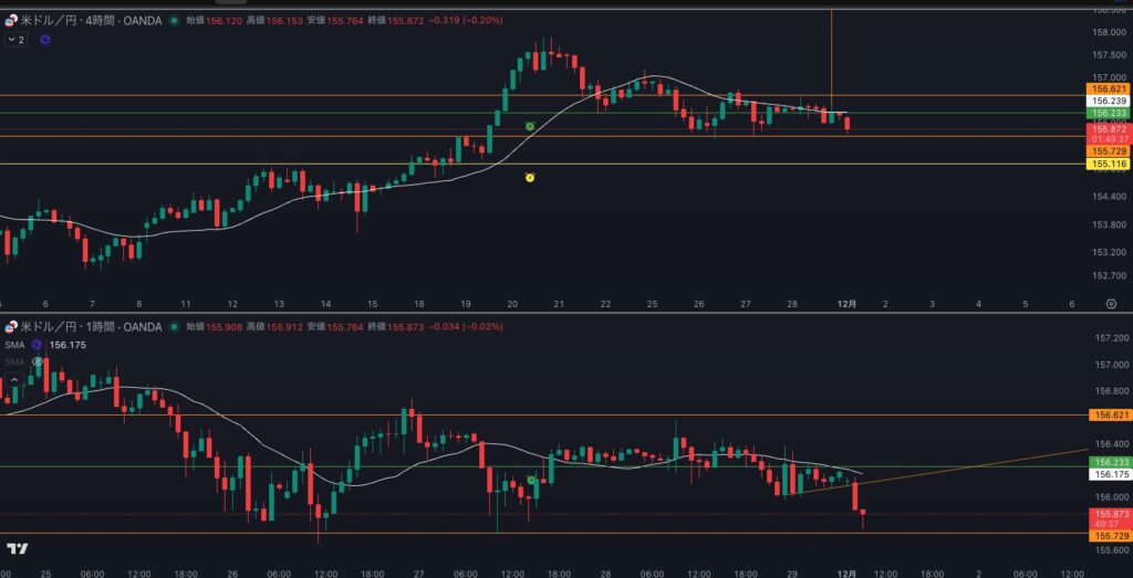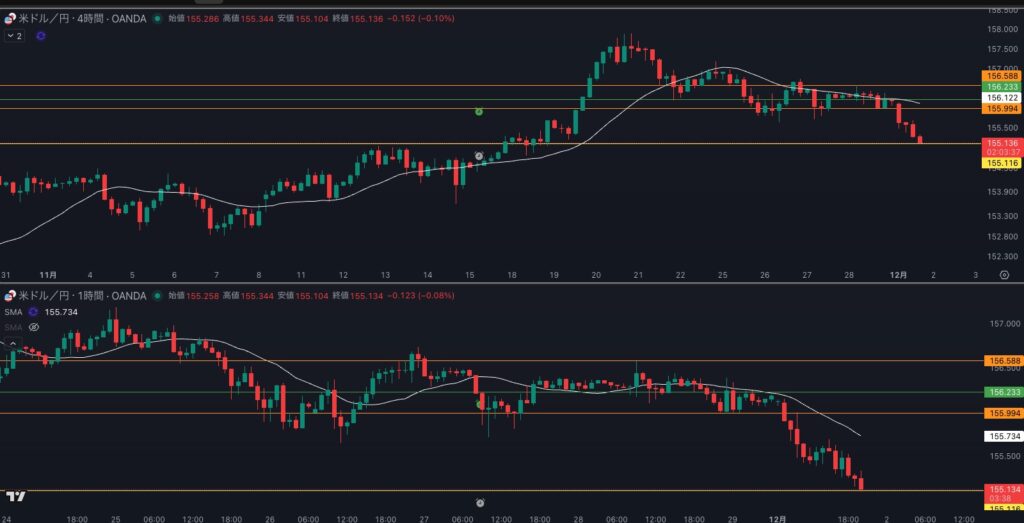 - 日足の確定は1日の終わりなので サポレジを動かさない