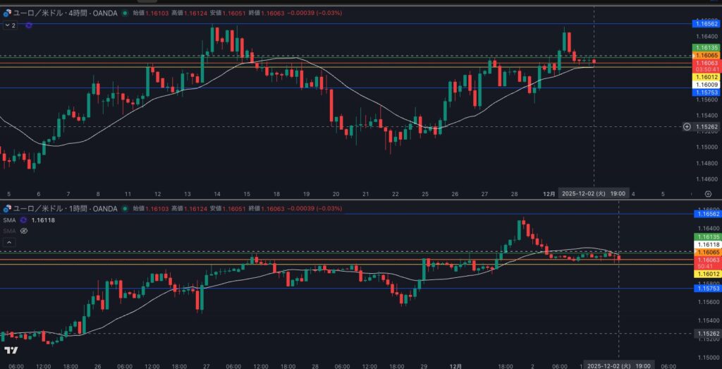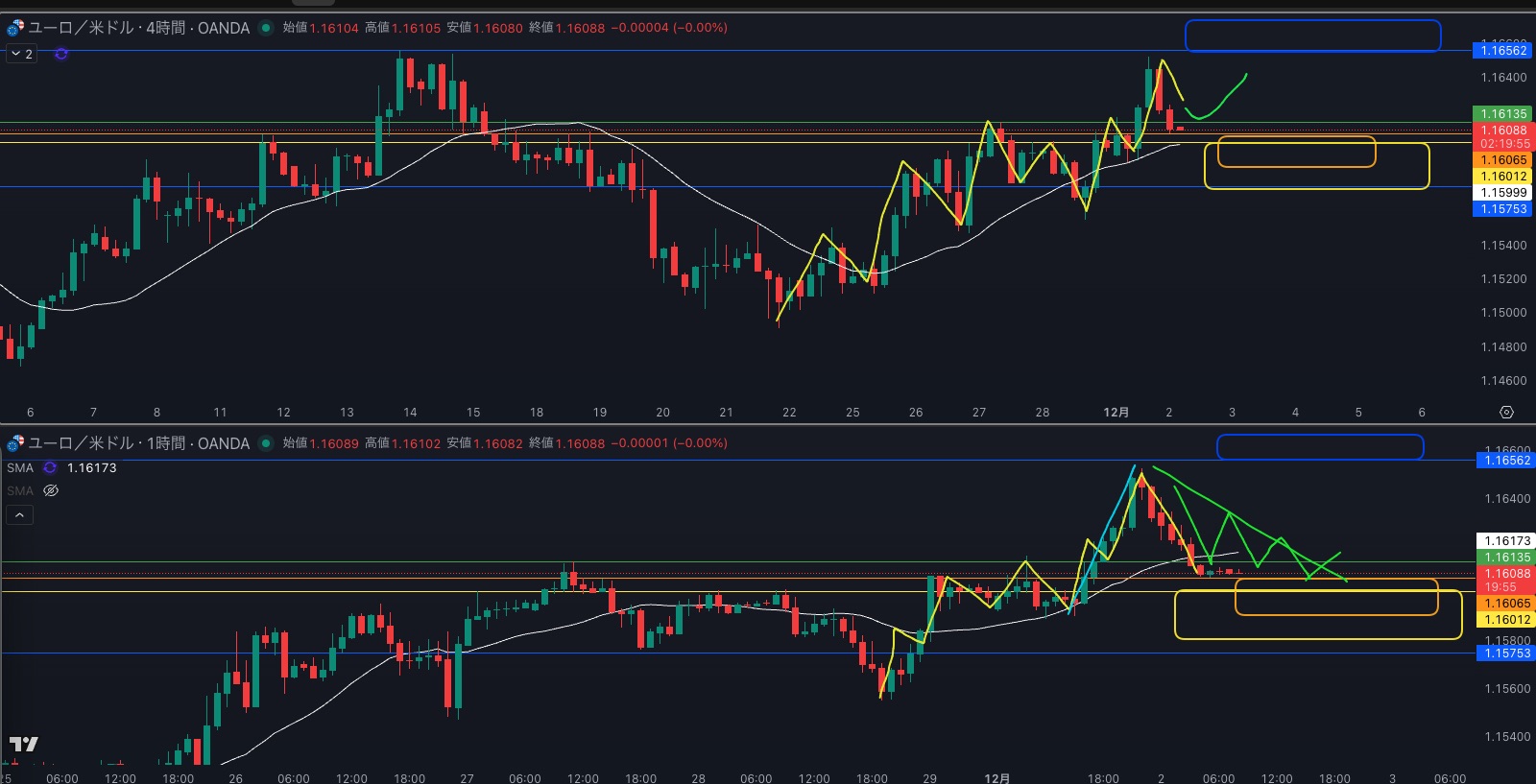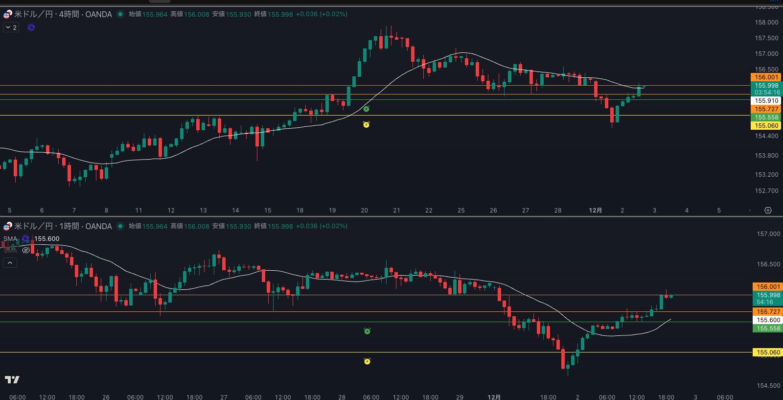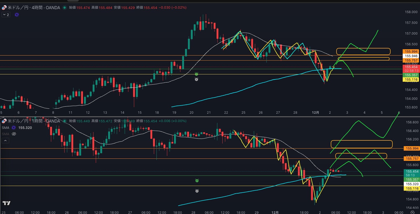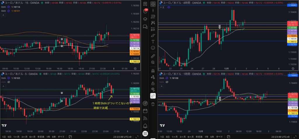 4時間足がSMAの上で確定したので 全戻しのセオリーで考えていく