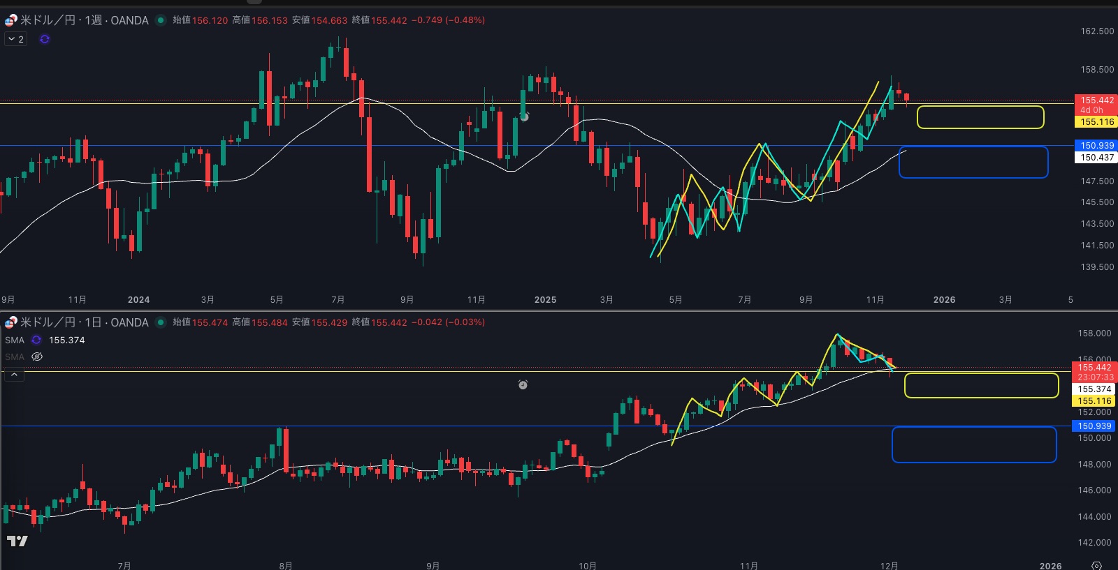 - 日足の確定は1日の終わりなので サポレジを動かさない